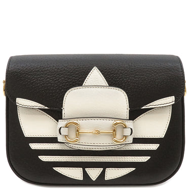 グッチ GUCCI ホースビット1955 ミニバッグ 658574 ブラック×ホワイト レザー ショルダーバッグ ゴールド金具 アディダス コラボ 黒 adidas