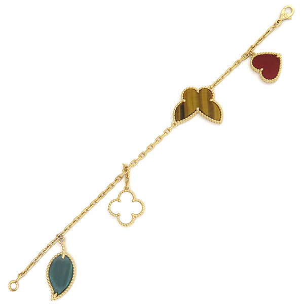 ヴァンクリーフアーペル Van Cleef & Arpels ラッキー アルハンブラ 4モチーフ VCARD79600 イエローゴールドXマルチカラー K18YG マラカイト マザーオブパール タイガーズアイ カーネリアン ブレスレット 750YG 18金