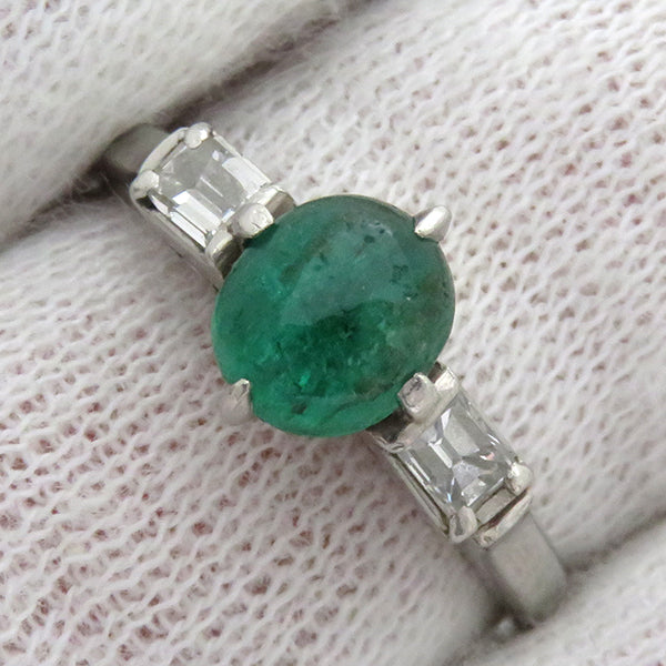 ノンブランド NON BRAND エメラルド ダイヤモンド リング プラチナシルバー Pt エメラルド ダイヤモンド リング 指輪 グリーン 緑 Pm 10.5号