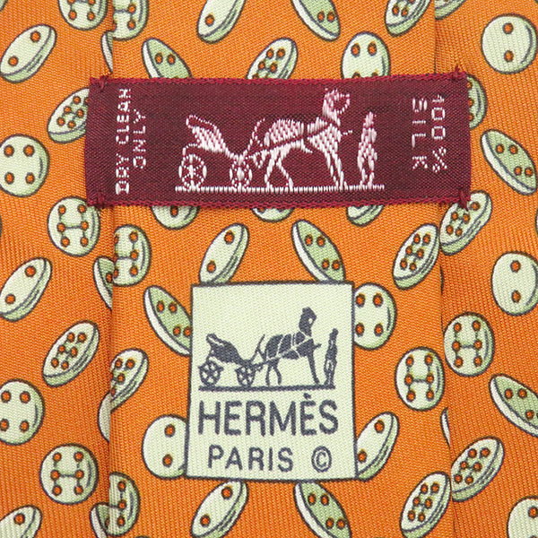 エルメス HERMES ボタン 9cm オレンジ×ベージュ シルク ネクタイ