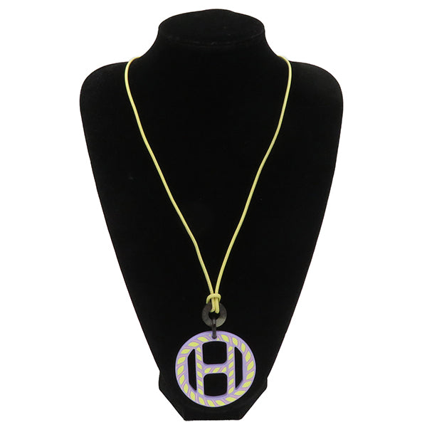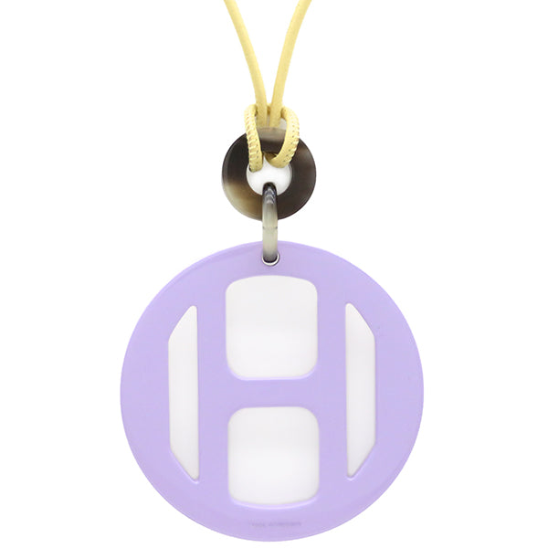 エルメス HERMES Hエキップ H057087FL01 パープル×イエロー バッファローホーン レザー ラッカー ネックレス 紫 黄色