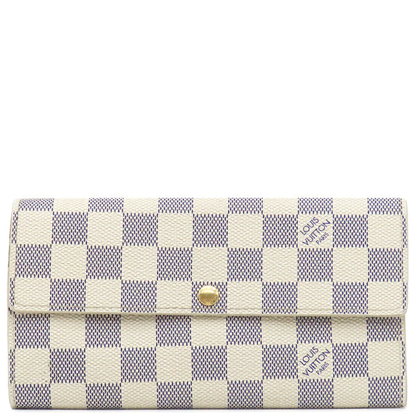ルイヴィトン LOUIS VUITTON ポルトフォイユ サラ N61735 ダミエアズール ダミエアズールキャンバス 長財布 ゴールド金具 白