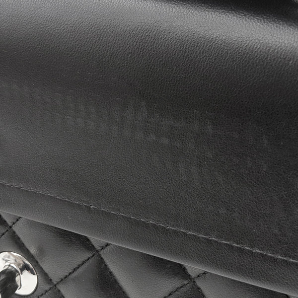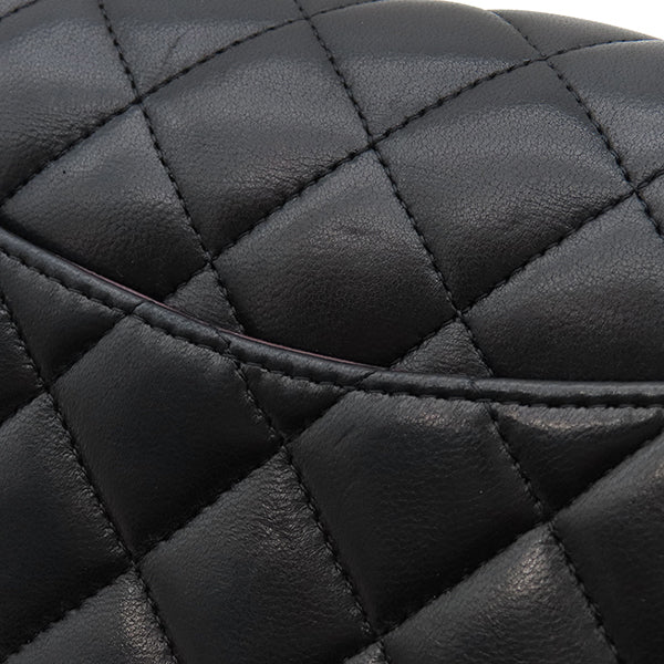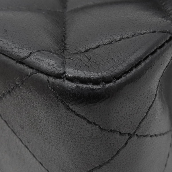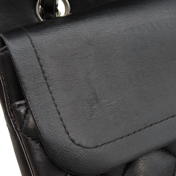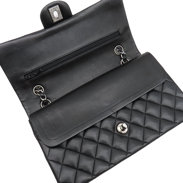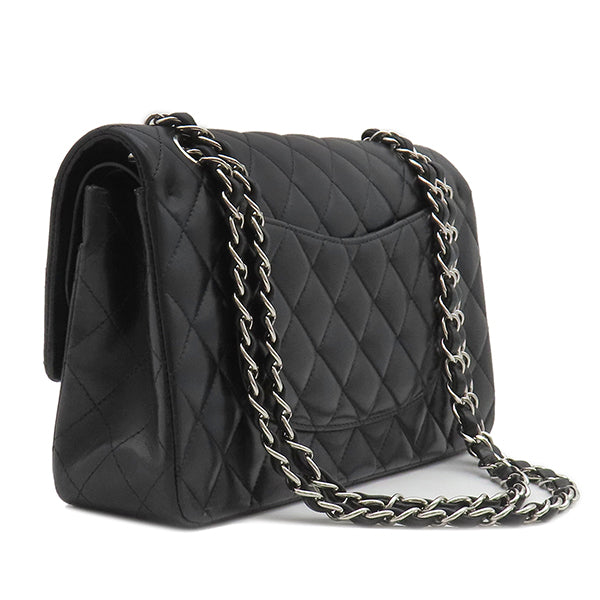 シャネル CHANEL マトラッセ 25 ダブルフラップ ブラック ラムスキン ショルダーバッグ シルバー金具 黒 ココマーク