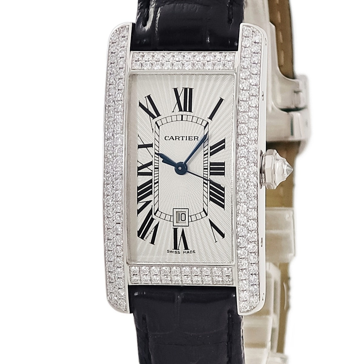 カルティエ Cartier タンクアメリカン MM WB710002 自動巻き メンズ レディース OH済 K18WG無垢 純正ダイヤ スクエア