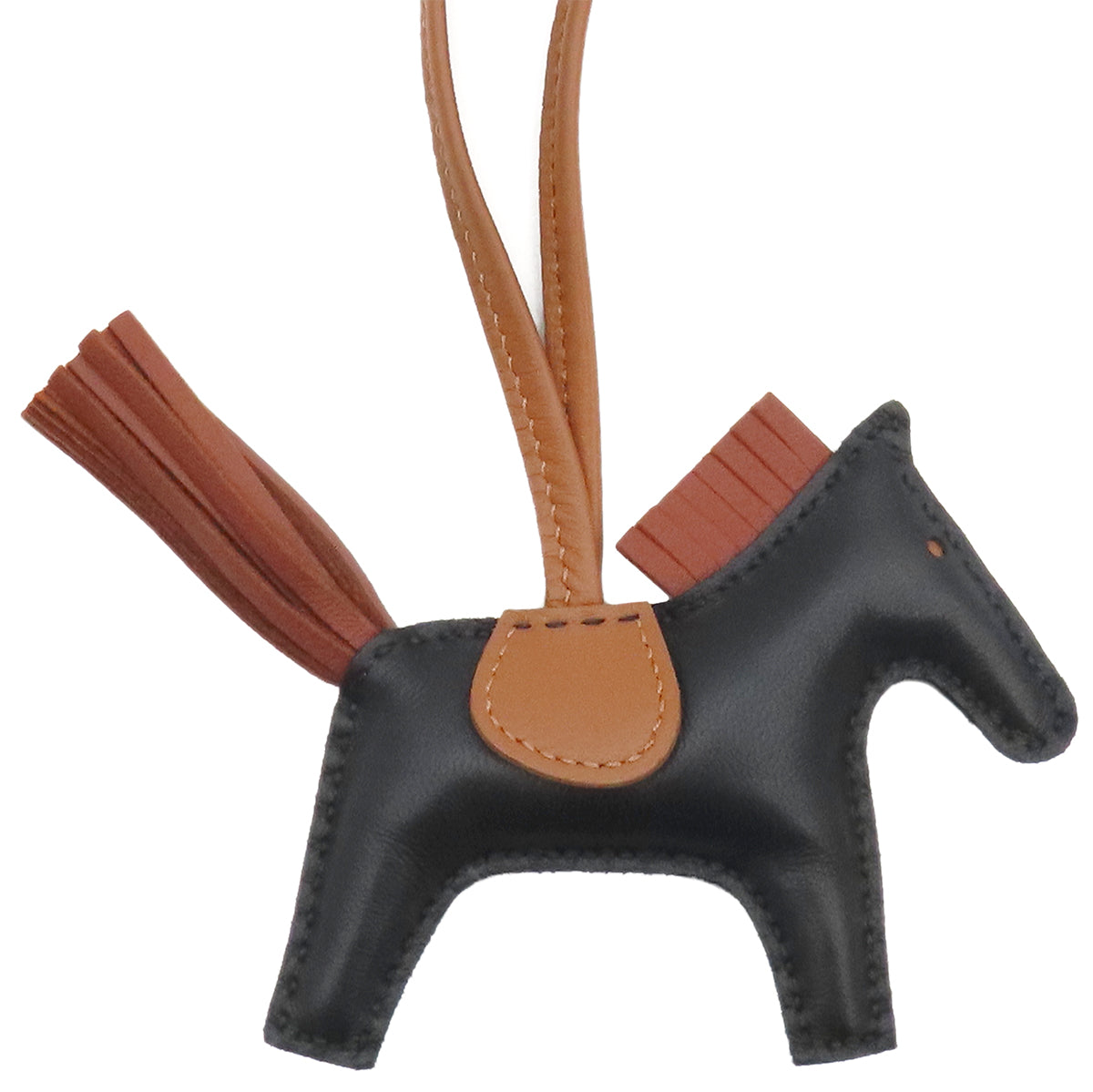 エルメス HERMES ロデオPM ブラック×シエンヌ×ゴールド アニューミロ バッグチャーム 黒 茶