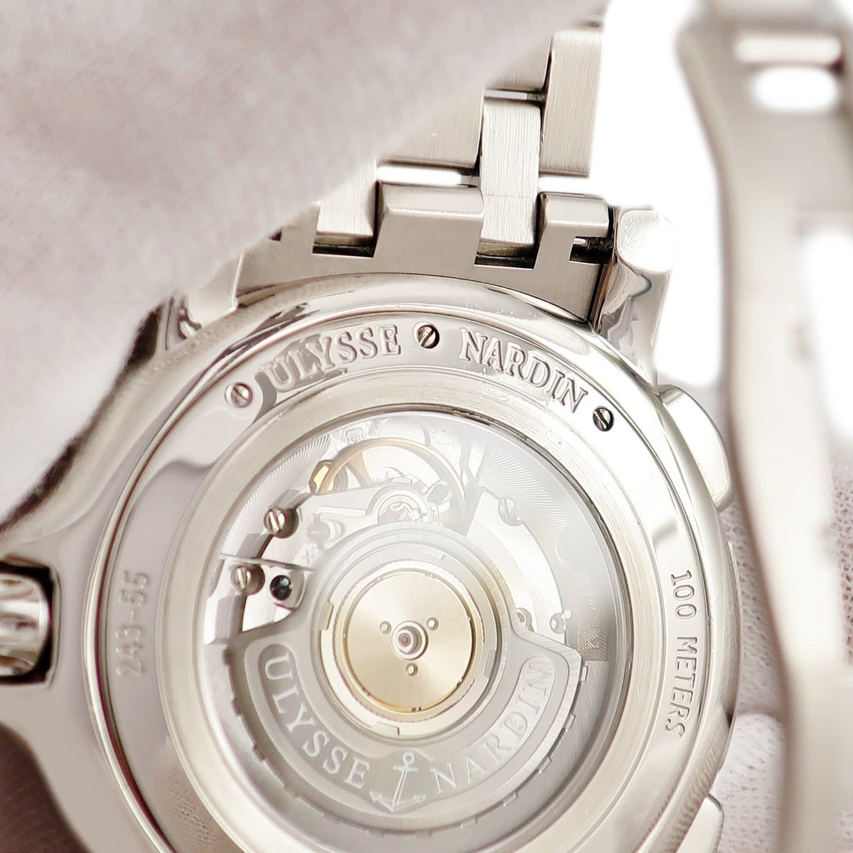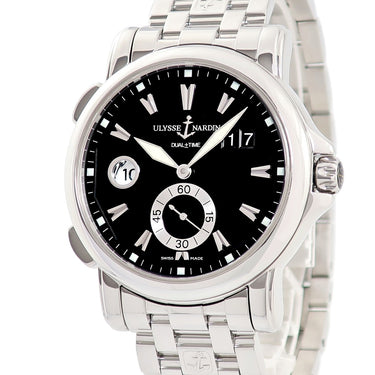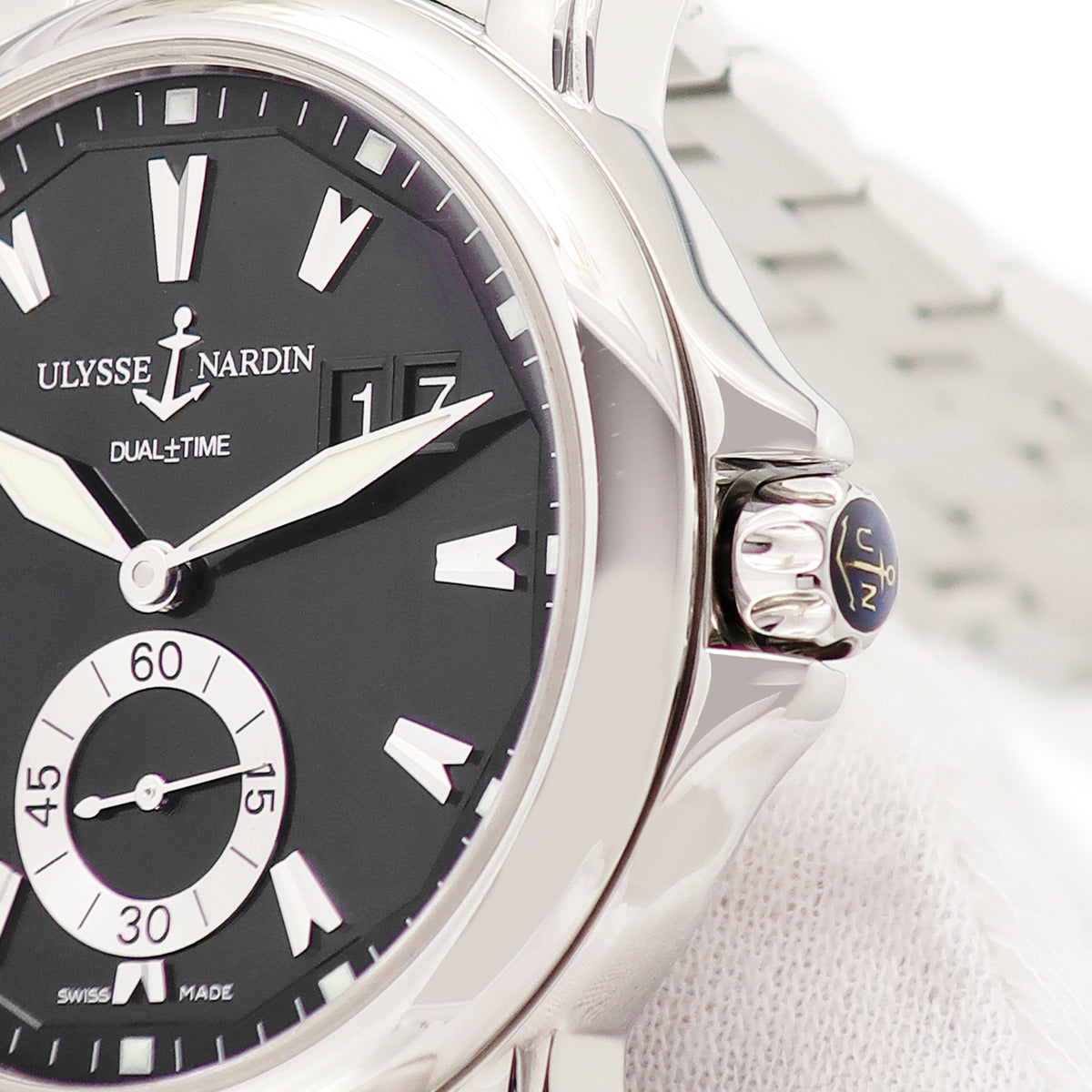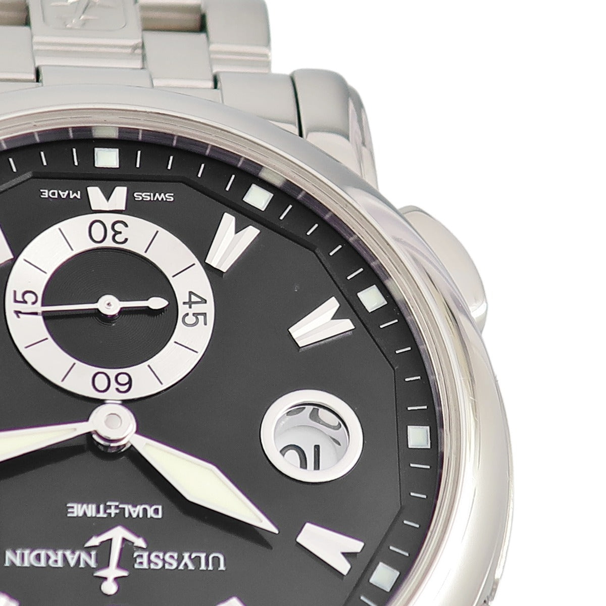 ユリスナルダン ULYSSE NARDIN デュアルタイム 42mm 243-55 自動巻き メンズ OH済 ビッグデイト ブラック スモールセコンド