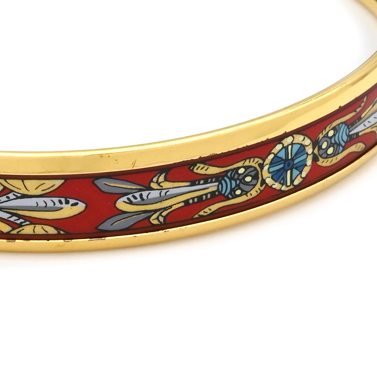 エルメス HERMES エマイユ PM レッドXマルチカラー GP 七宝焼き バングル ゴールド金具 ブレスレット 七宝