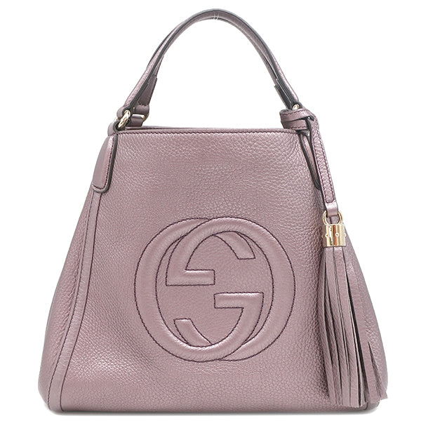 グッチ GUCCI ソーホー インターロッキング G 336751 パープル レザー 2WAYバッグ シャンパンゴールド金具 タッセル フリンジチャーム メタリック