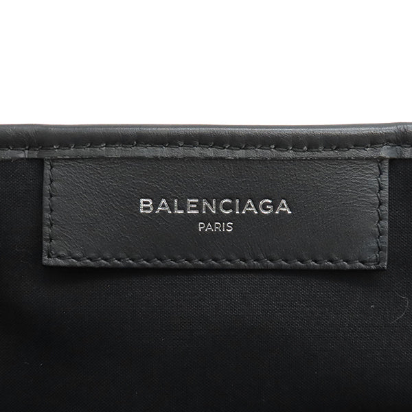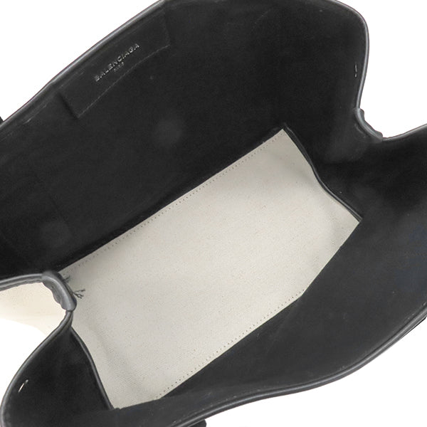 バレンシアガ BALENCIAGA ネイビーカバス 339933 アイボリーXブラック キャンバス レザー トートバッグ シルバー金具 白 黒