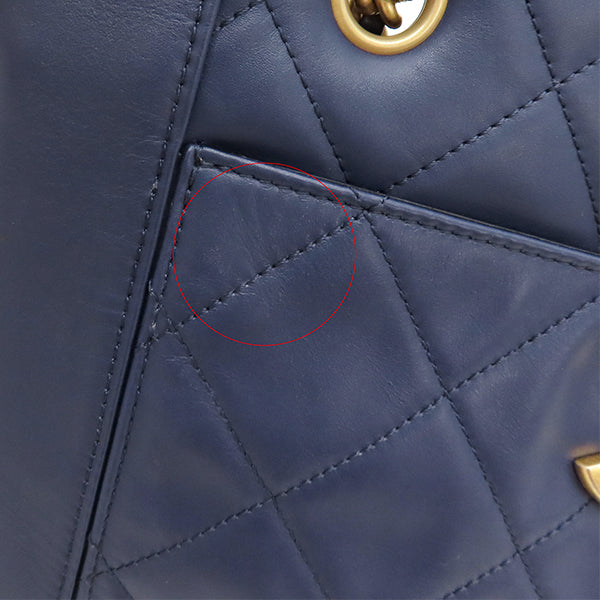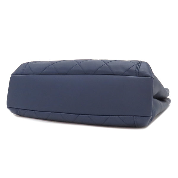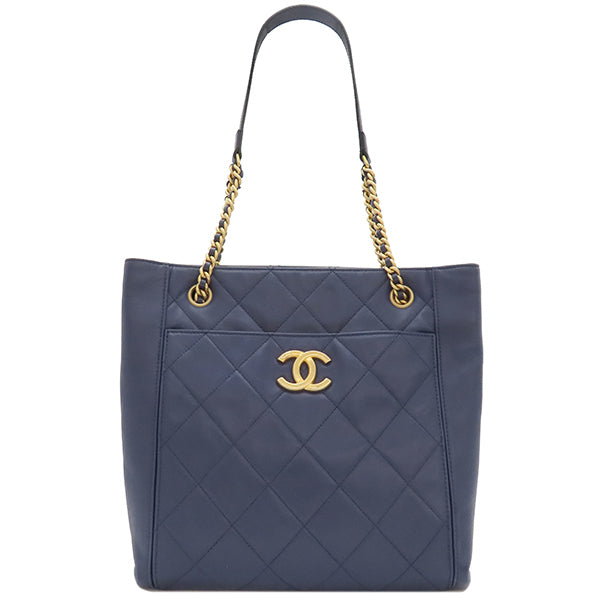 シャネル CHANEL マトラッセ スモール ショッピングバッグ ネイビー カーフレザー トートバッグ ゴールド金具 紺 チェーンショルダー ココマーク