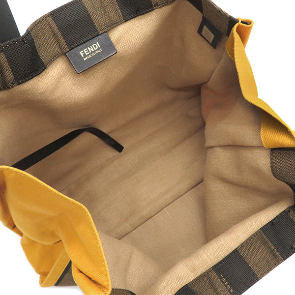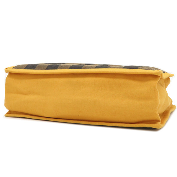 フェンディ FENDI ぺカン 8BH252 ブラウン×イエロー キャンバス レザー トートバッグ ゴールド金具 ハンドバッグ ミニトート 茶 黄