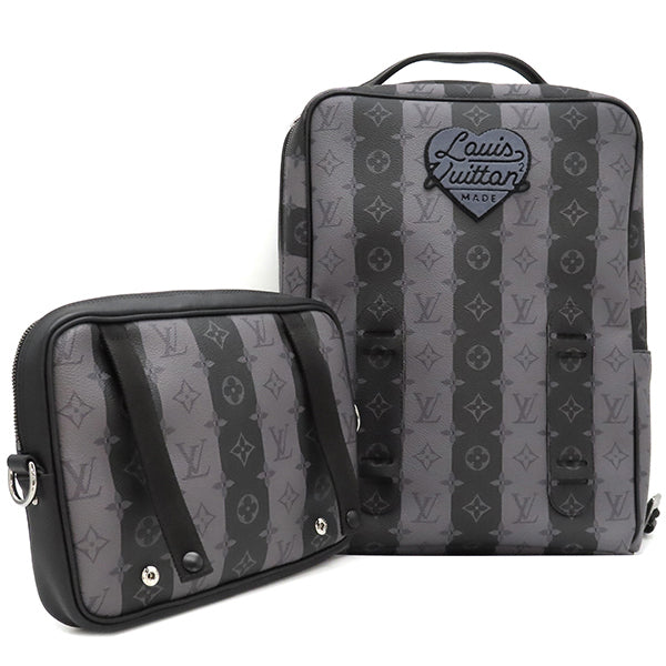 ルイヴィトン LOUIS VUITTON モジュラー バックパック M45962 モノグラムストライプエクリプス モノグラムストライプエクリプスキャンバス リュック・デイパック シルバー金具 黒 グレー NIGO