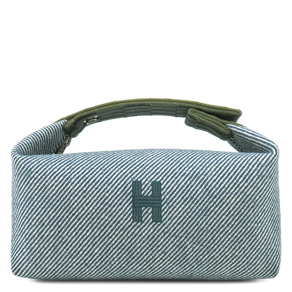 エルメス HERMES ブリッド ア ブラック PM ブルーアビス ウール ポーチ シルバー金具 青 ハンドバッグ バニティバッグ