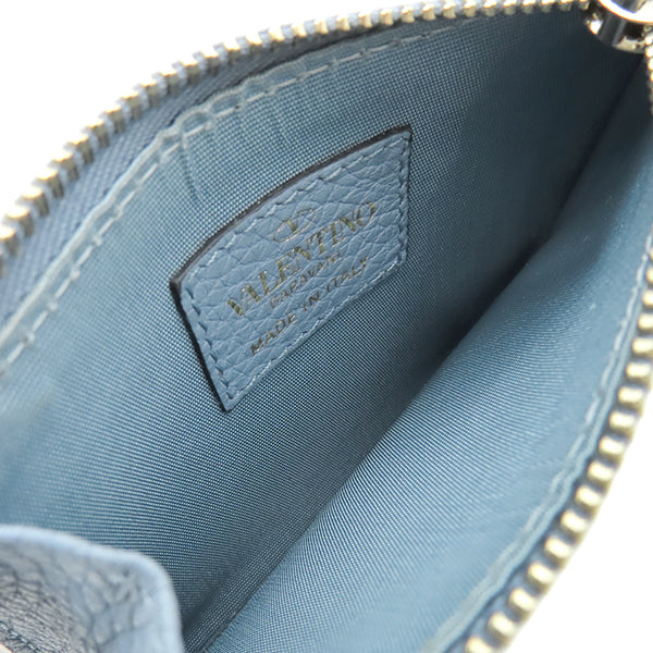 ヴァレンティノ VALENTINO ロックスタッズ カードホルダー ブルー レザー カードケース ゴールド金具 コインケース 小銭入れ フラグメントケース