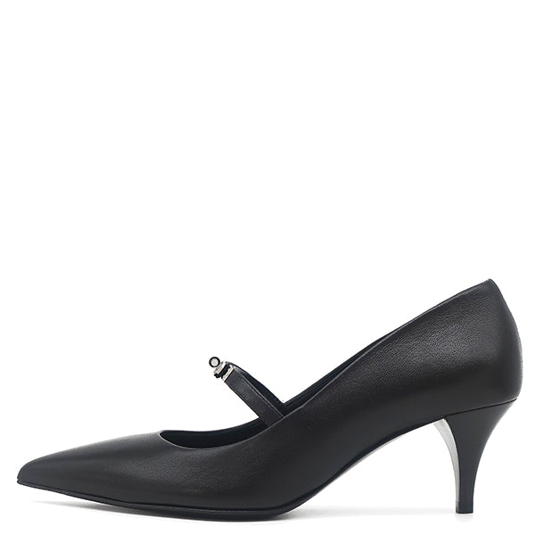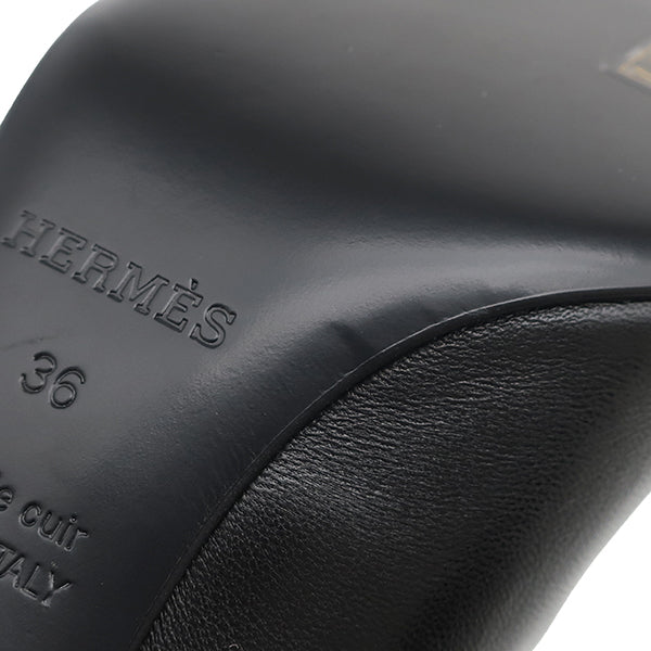 エルメス HERMES マジェステ 60 H261046Z ブラック レザー 36 パンプス シルバー金具 黒 ケリーバックル ポインテッドトゥ ストラップ付 6cmヒール