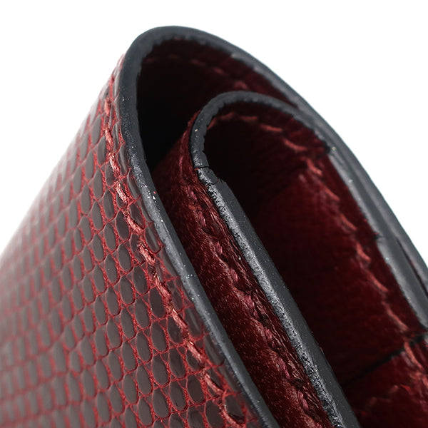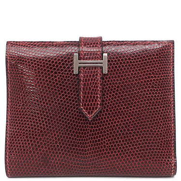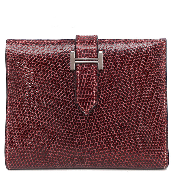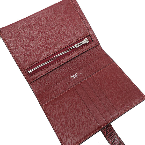 エルメス HERMES ベアンコンパクト ルージュアッシュ リザード 二つ折り財布 シルバー金具 赤