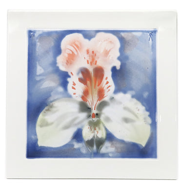 マイセン MEISSEN カトレヤ 陶板画 ホワイト×ブルー×レッド 陶磁器 オブジェ 白 青 赤 カトレア 絵画 陶磁器絵付け 陶板 置物 蘭 花