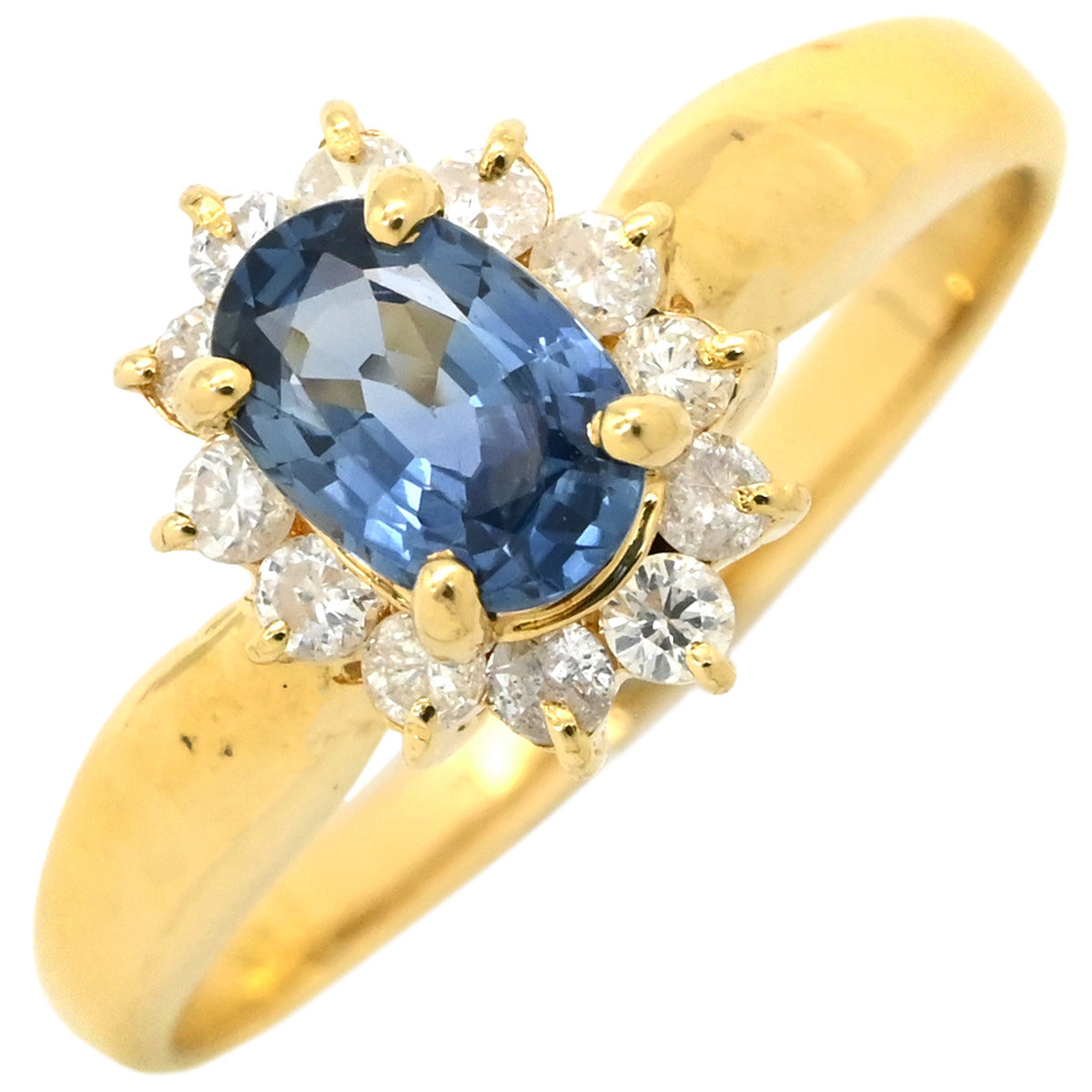 ノンブランド NON BRAND ブルーサファイア ダイヤ イエローゴールド リング 指輪 青 9.5号