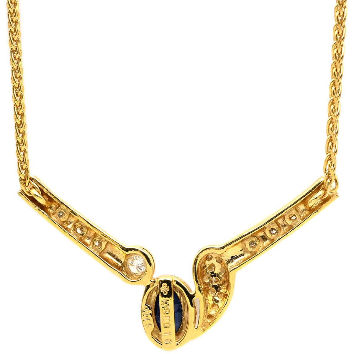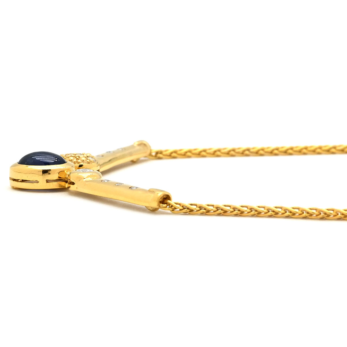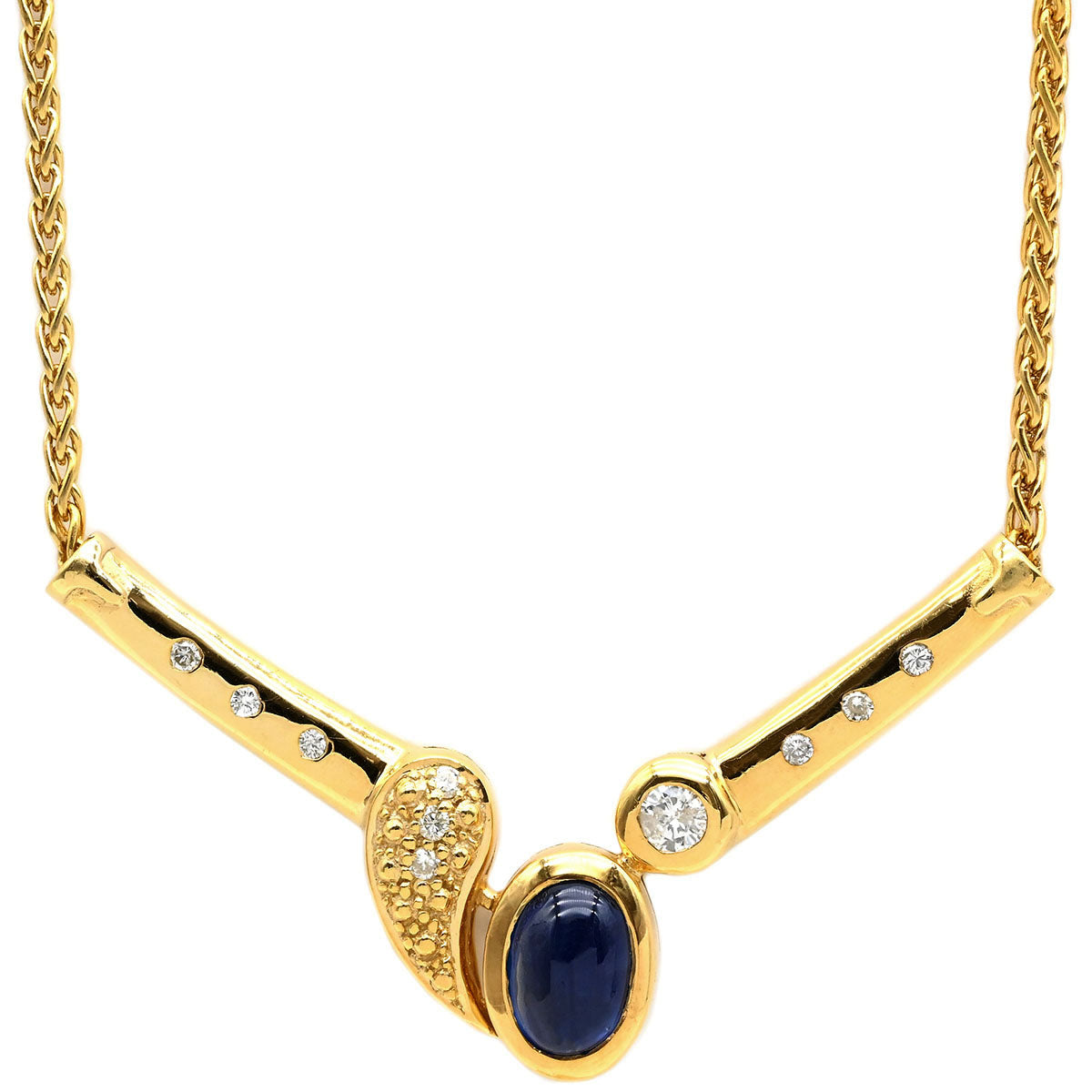 ノンブランド NON BRAND ダイヤ ブルーサファイア ペンダント イエローゴールド ネックレス オーバルカボションカット