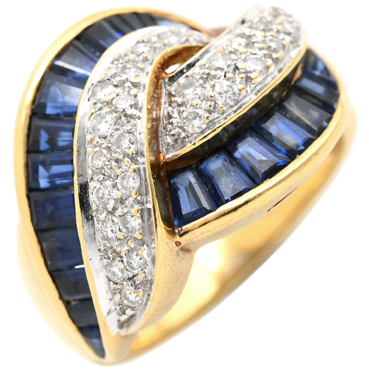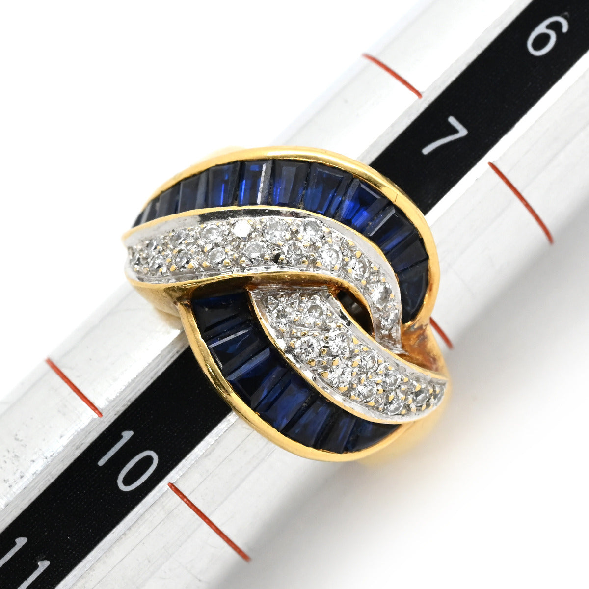 ノンブランド NON BRAND ブルーサファイア ダイヤ イエローゴールド リング 指輪 青 8.5号