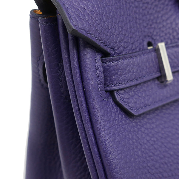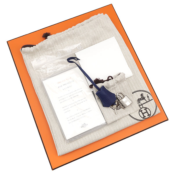 エルメス HERMES バーキン25 ヴェルソ ブルーアンクル×オレンジ トゴ ハンドバッグ シルバー金具 青 オレンジ