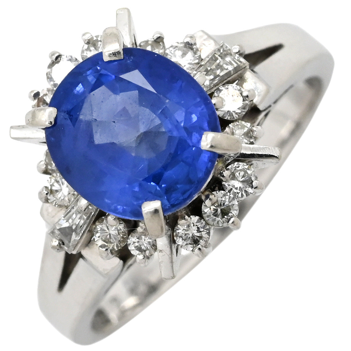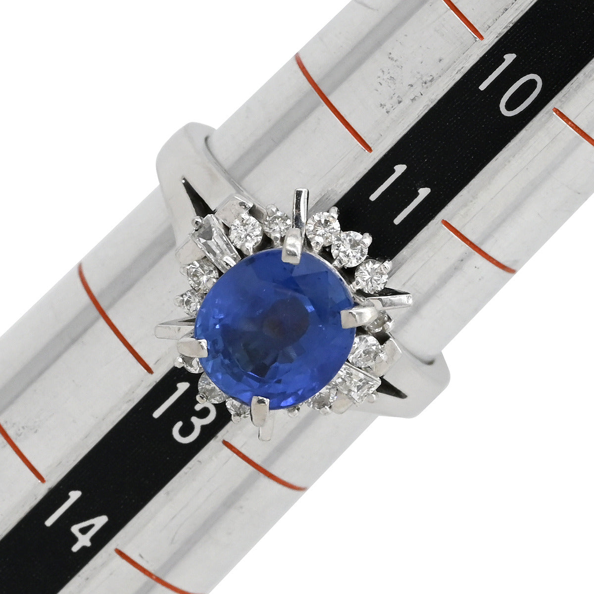 ノンブランド NON BRAND ブルーサファイア ダイヤ リング ブルー×プラチナシルバー リング 指輪 青 プラチナム オーバル 12号