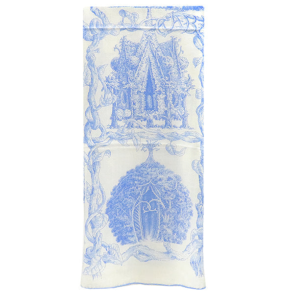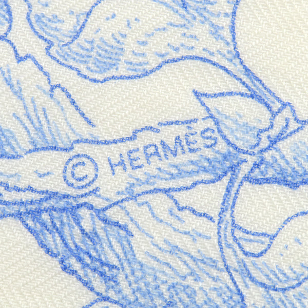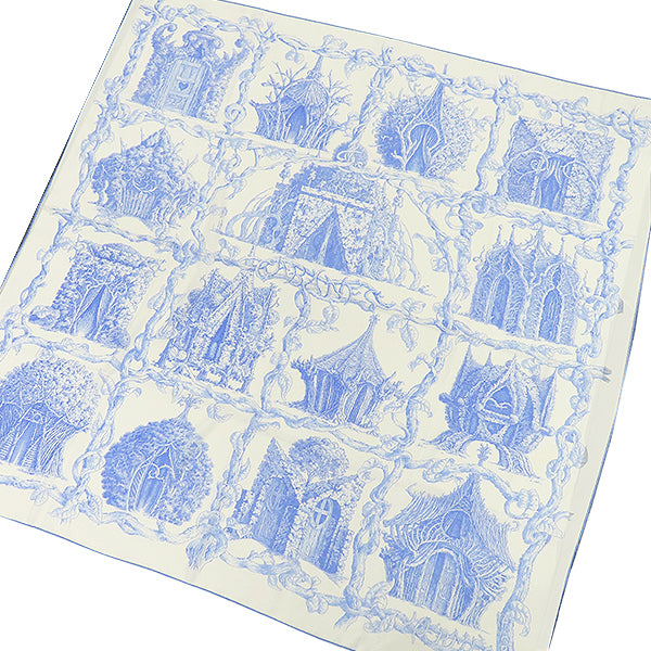 エルメス HERMES ショール カレ140 CARRE カレジェアン アイボリー×ライトブルー カシミヤ シルク ストール 【LES CABANES /さまざまな小屋】