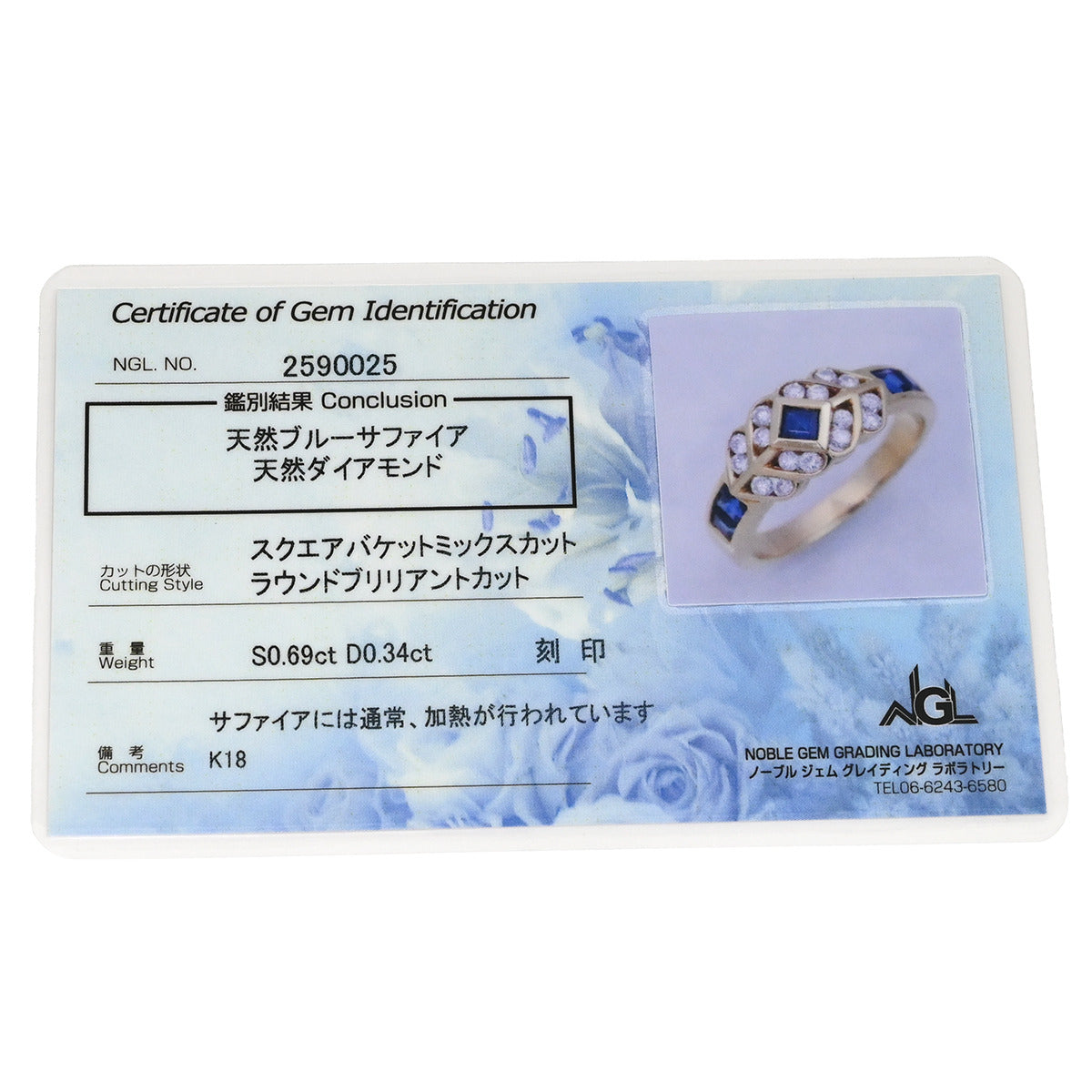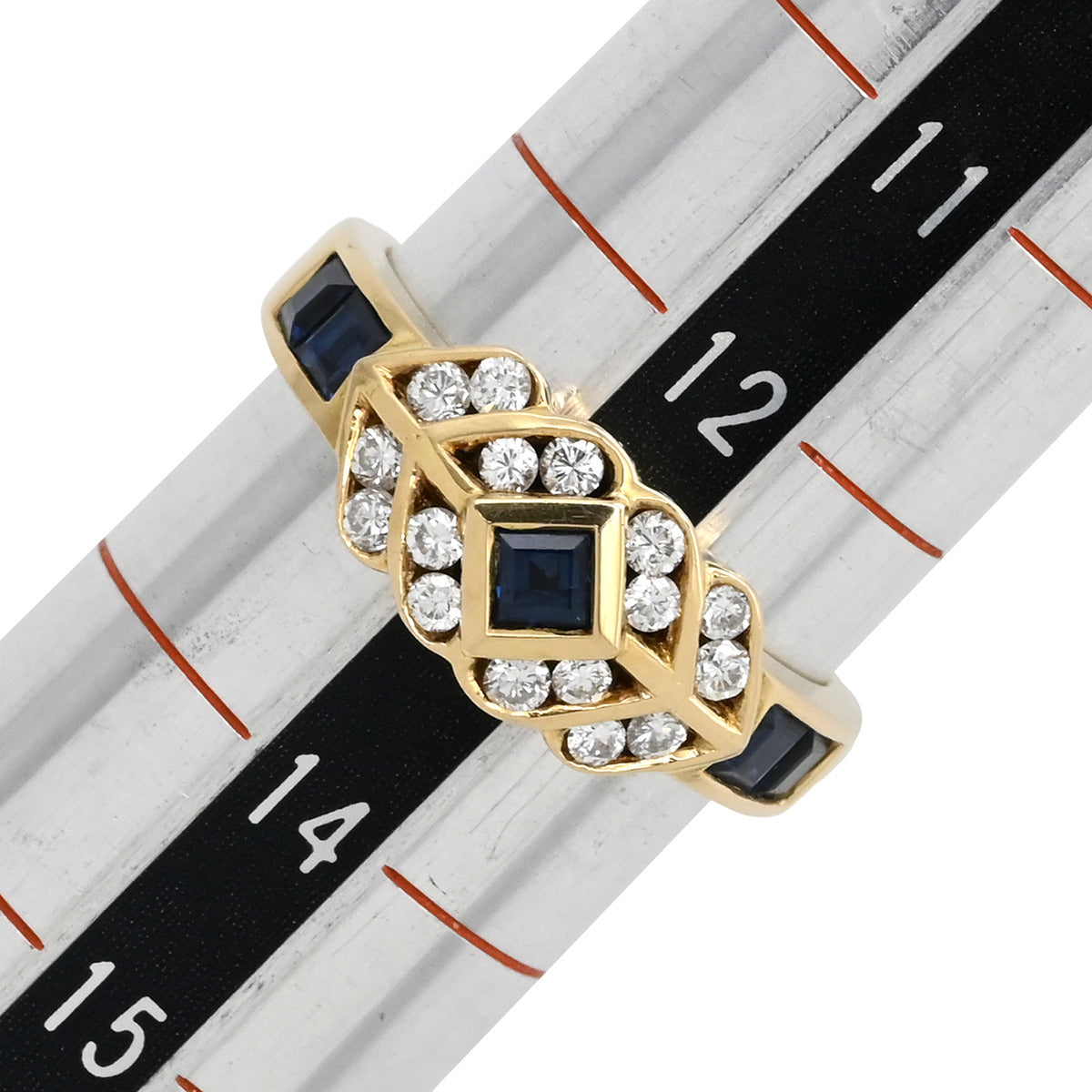 ノンブランド NON BRAND ブルーサファイア ダイヤ イエローゴールド×ブルー K18YG サファイア ダイヤモンド リング 指輪 Au750 18K 18金 ダイヤ ジュエリー ブルー 13号