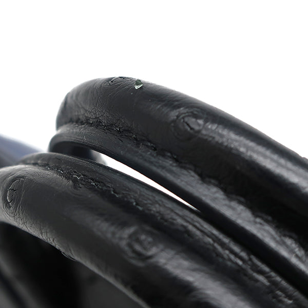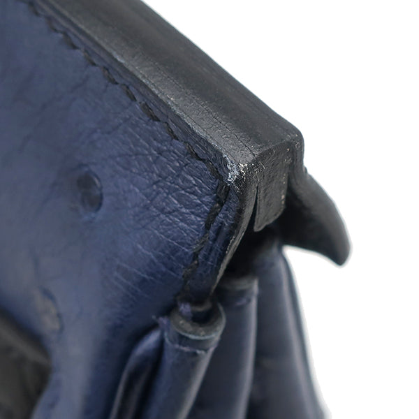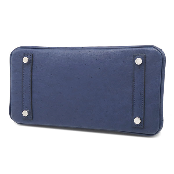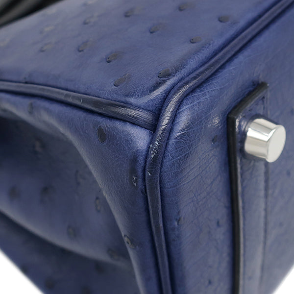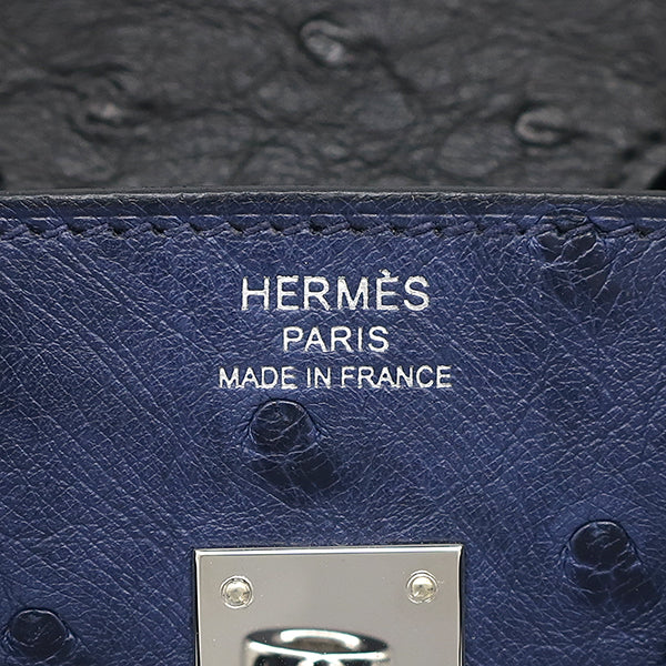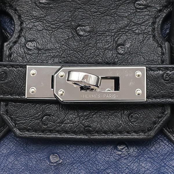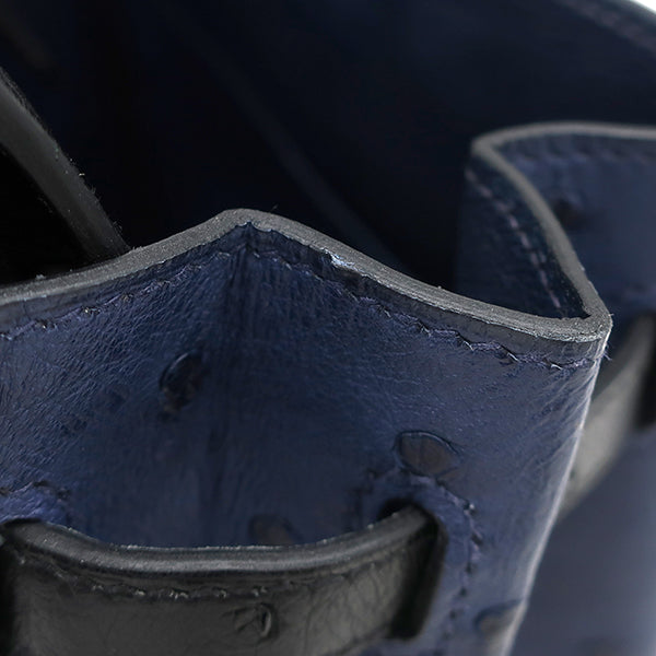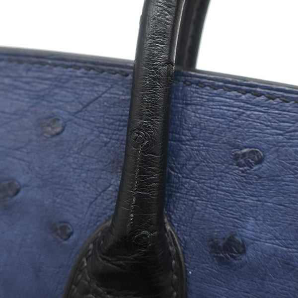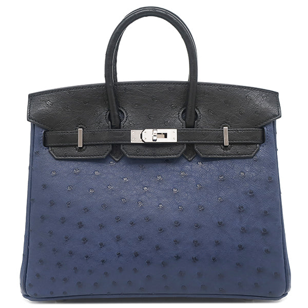 エルメス HERMES バーキン25 ヴェルソー ブルーサフィール×ブラック オーストリッチ ハンドバッグ シルバー金具 青 黒