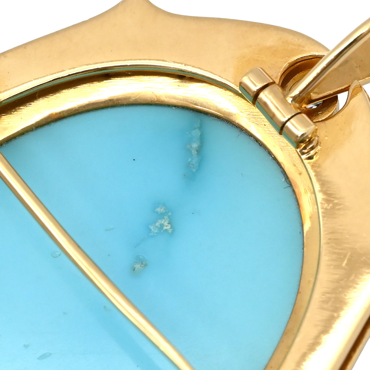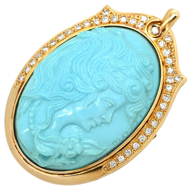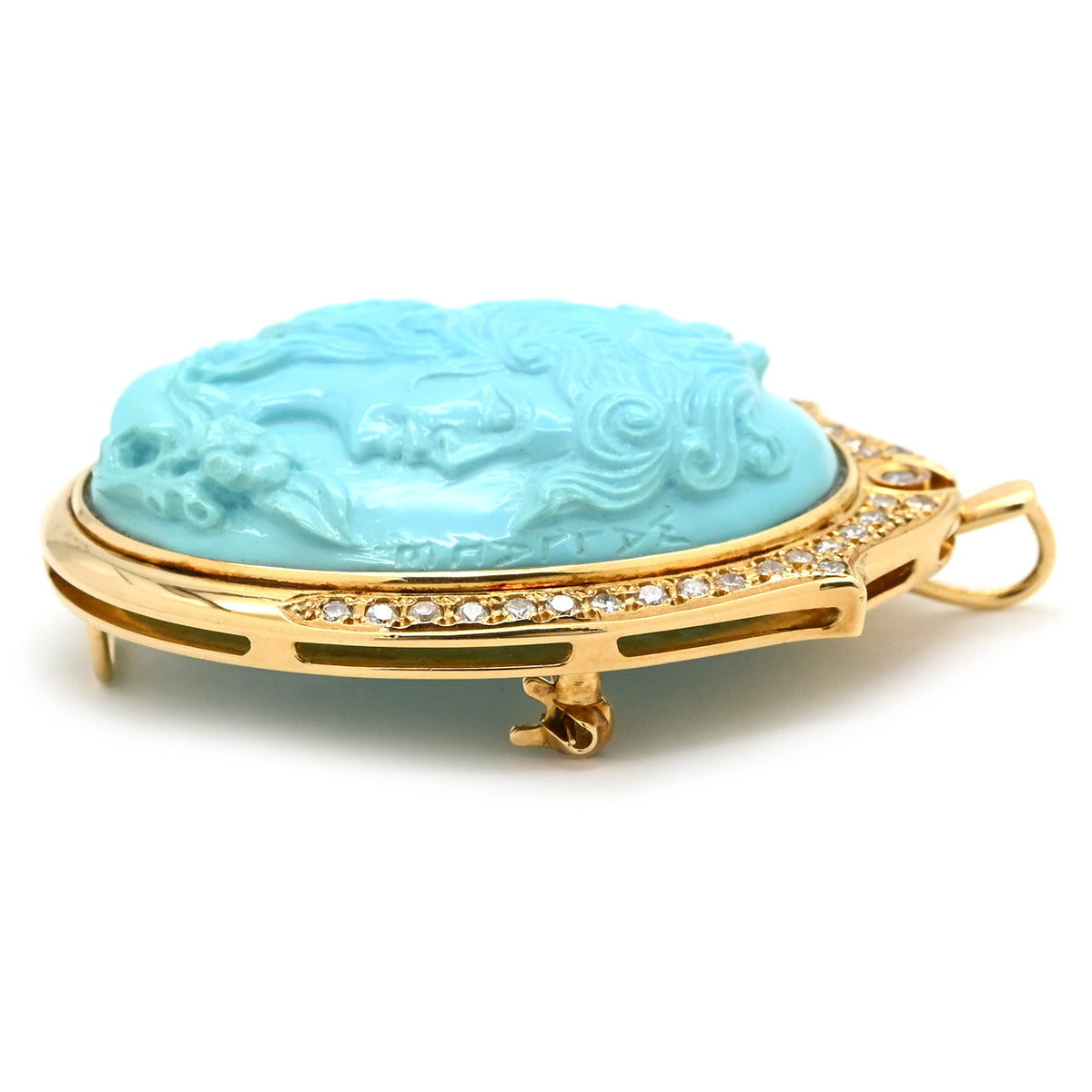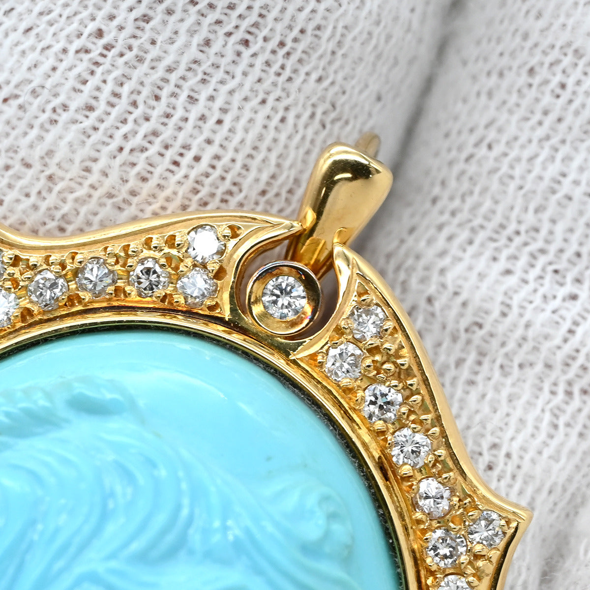 ノンブランド NON BRAND ターコイズ ダイヤ イエローゴールド ブローチ 青 彫刻 ペンダントトップ