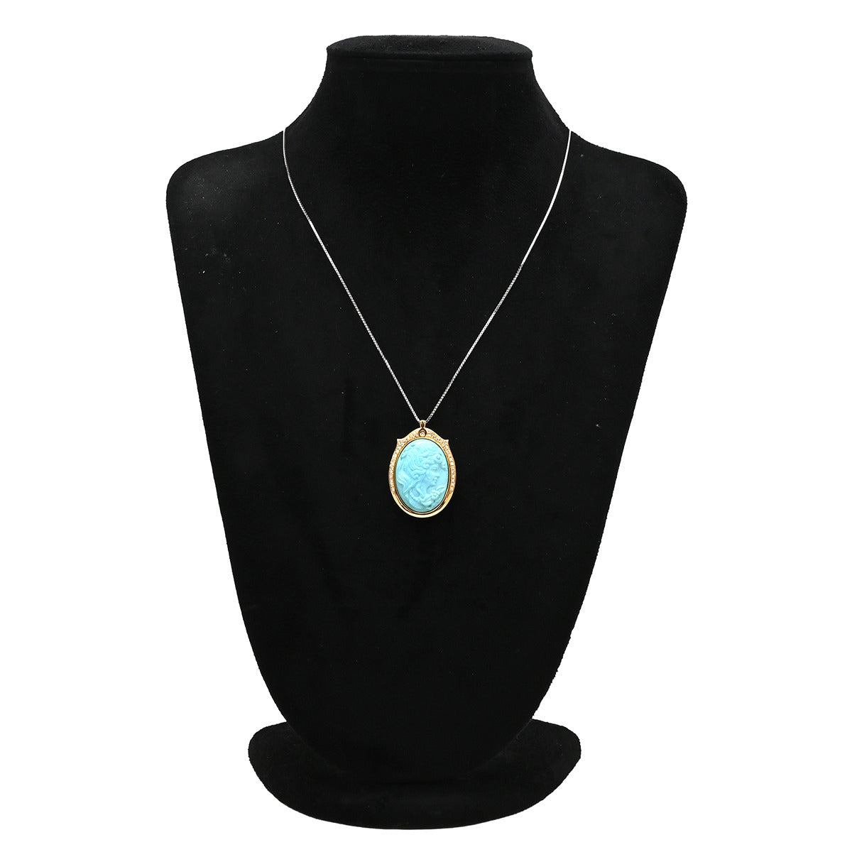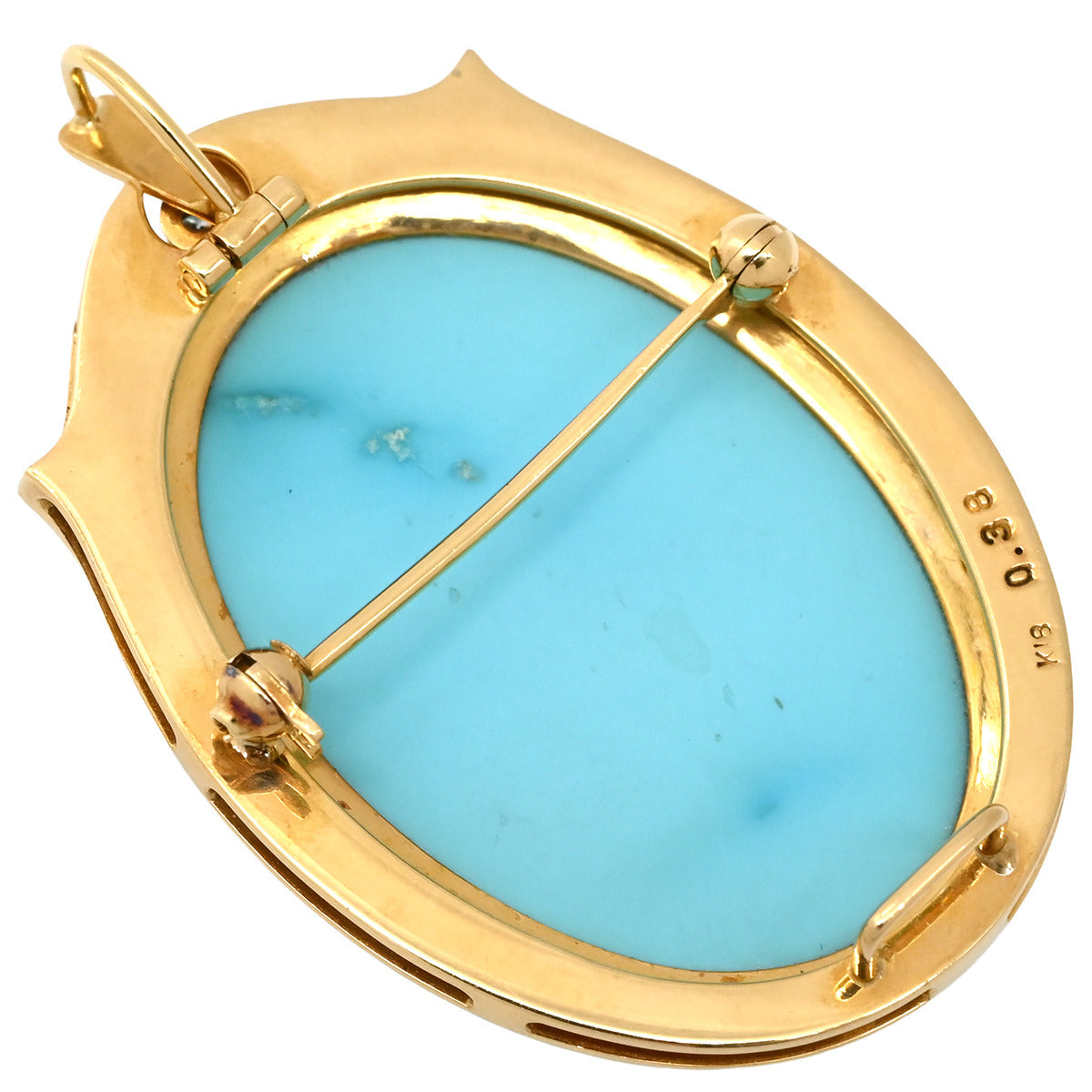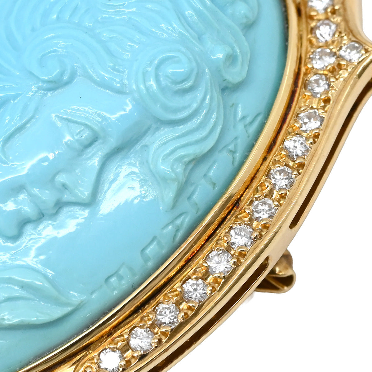 ノンブランド NON BRAND ターコイズ ダイヤ イエローゴールド ブローチ 青 彫刻 ペンダントトップ