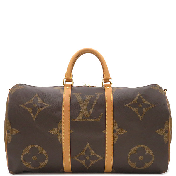 ルイヴィトン LOUIS VUITTON キーポル バンドリエール50 M44739 モノグラムジャイアントリバース レザー モノグラムジャイアントリバースキャンバス ボストンバッグ ゴールド金具 茶