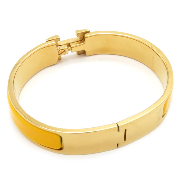 エルメス HERMES クリックH PM イエロー×ゴールド GP エナメル ブレスレット ゴールド金具 Hブレス