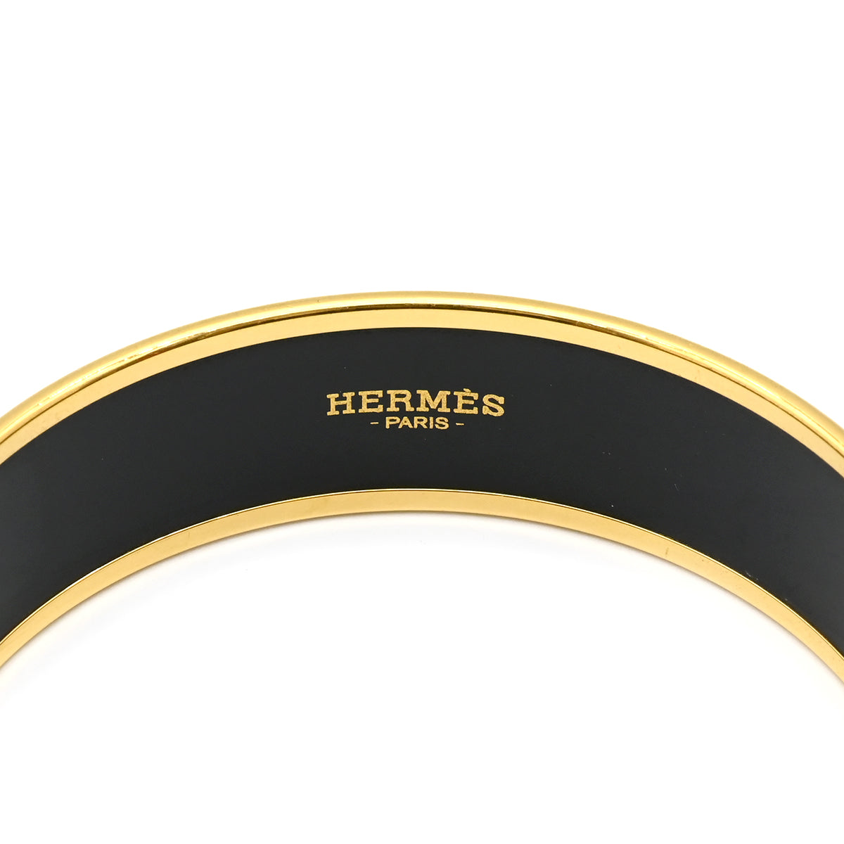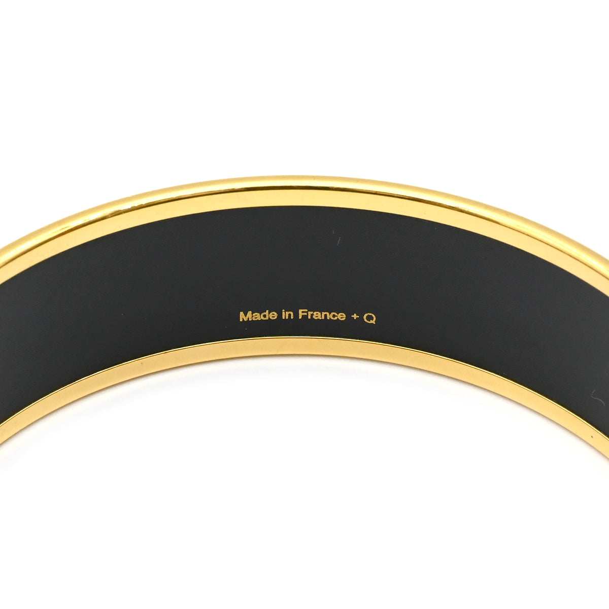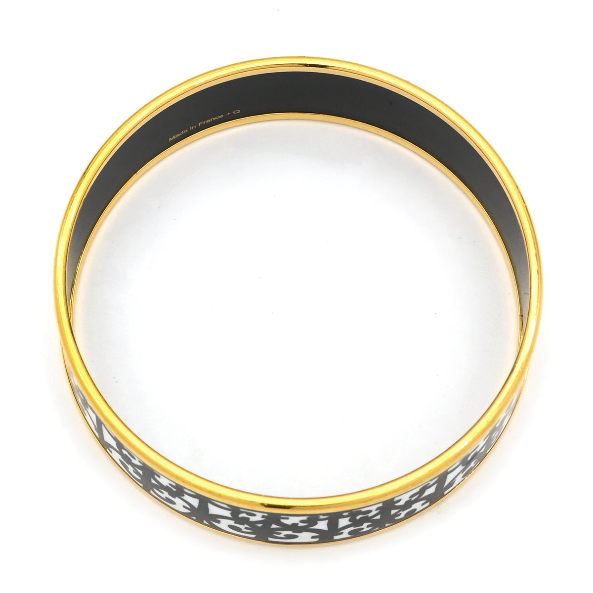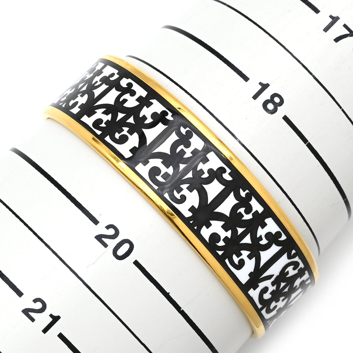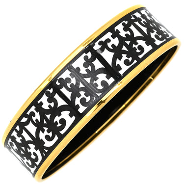 エルメス HERMES ガダルキヴィール エマイユ GM ブラックXホワイト GP 七宝焼き バングル ゴールド金具 ブレスレット 黒 白