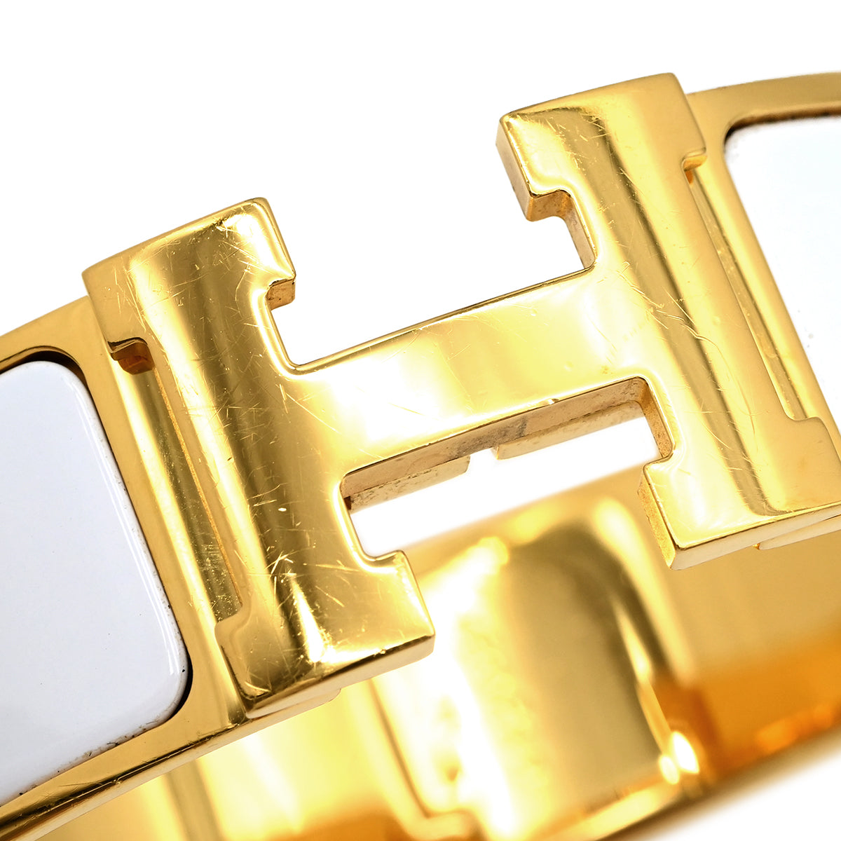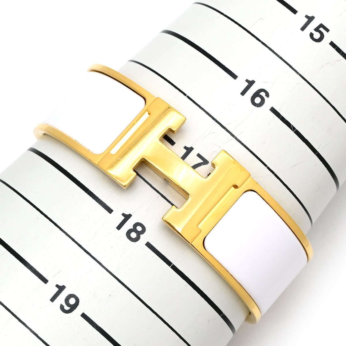 エルメス HERMES クリッククラックH GM H300001F 31GM ホワイト×ゴールド メタル エナメル ブレスレット ゴールド金具 Hブレス ラージ