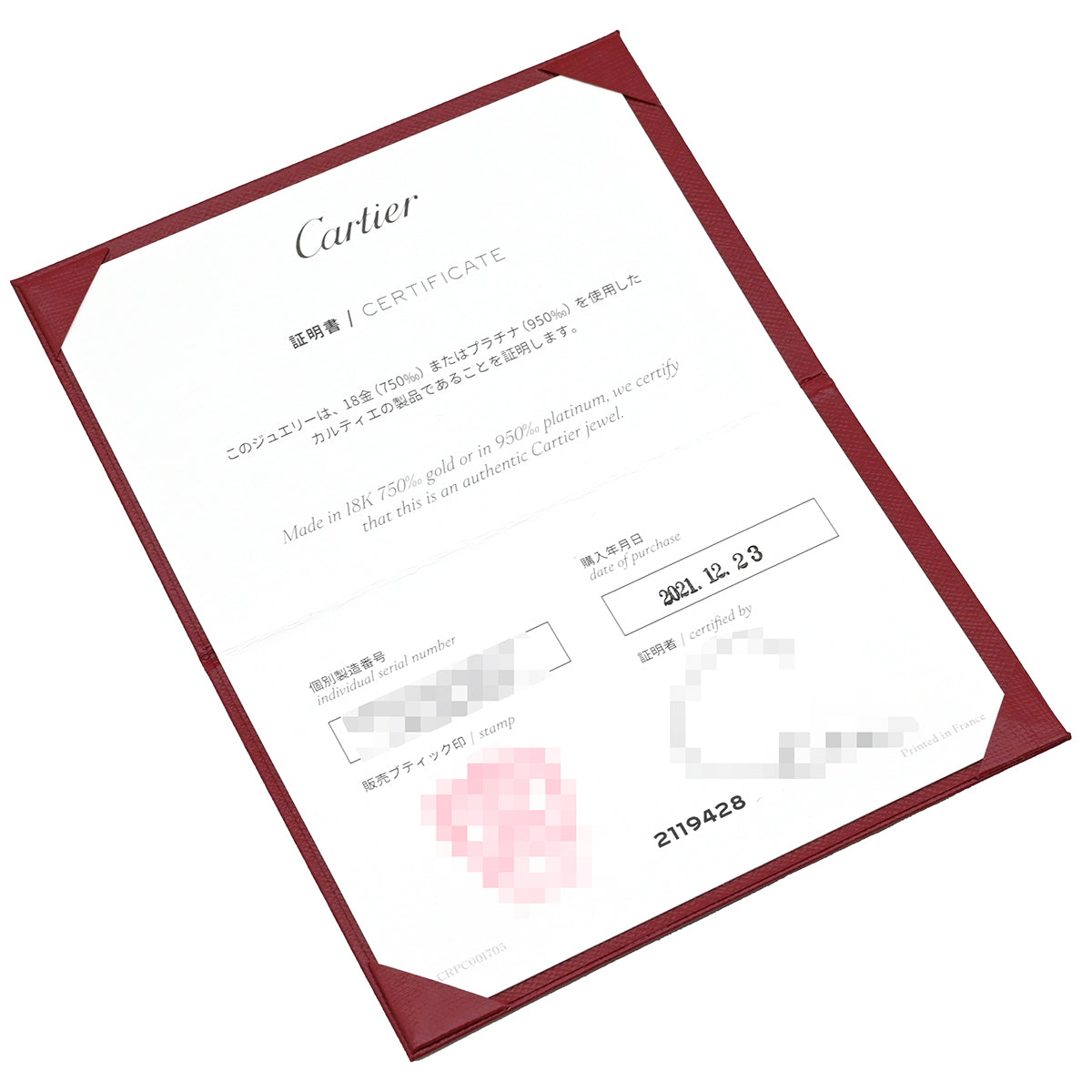 管理コード: 240500512878Cartier