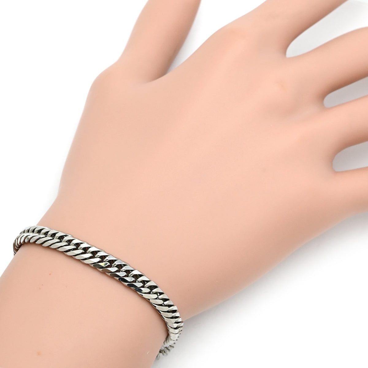 喜平 KIHEI PT850 18.3cm 22.2g 6面 ダブル W プラチナシルバー Pt850 ブレスレット 造幣局検定マーク ※ショッピングローン対応していません