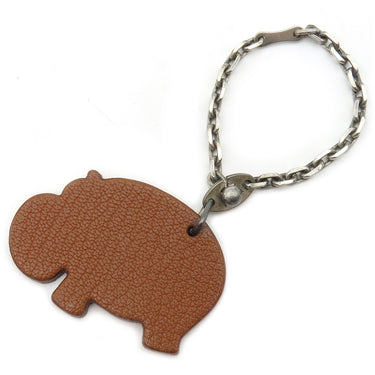 エルメス HERMES アニマルモチーフ ブラウン×オレンジ レザー メタル バッグチャーム シルバー金具 カバ ヒポポタマス