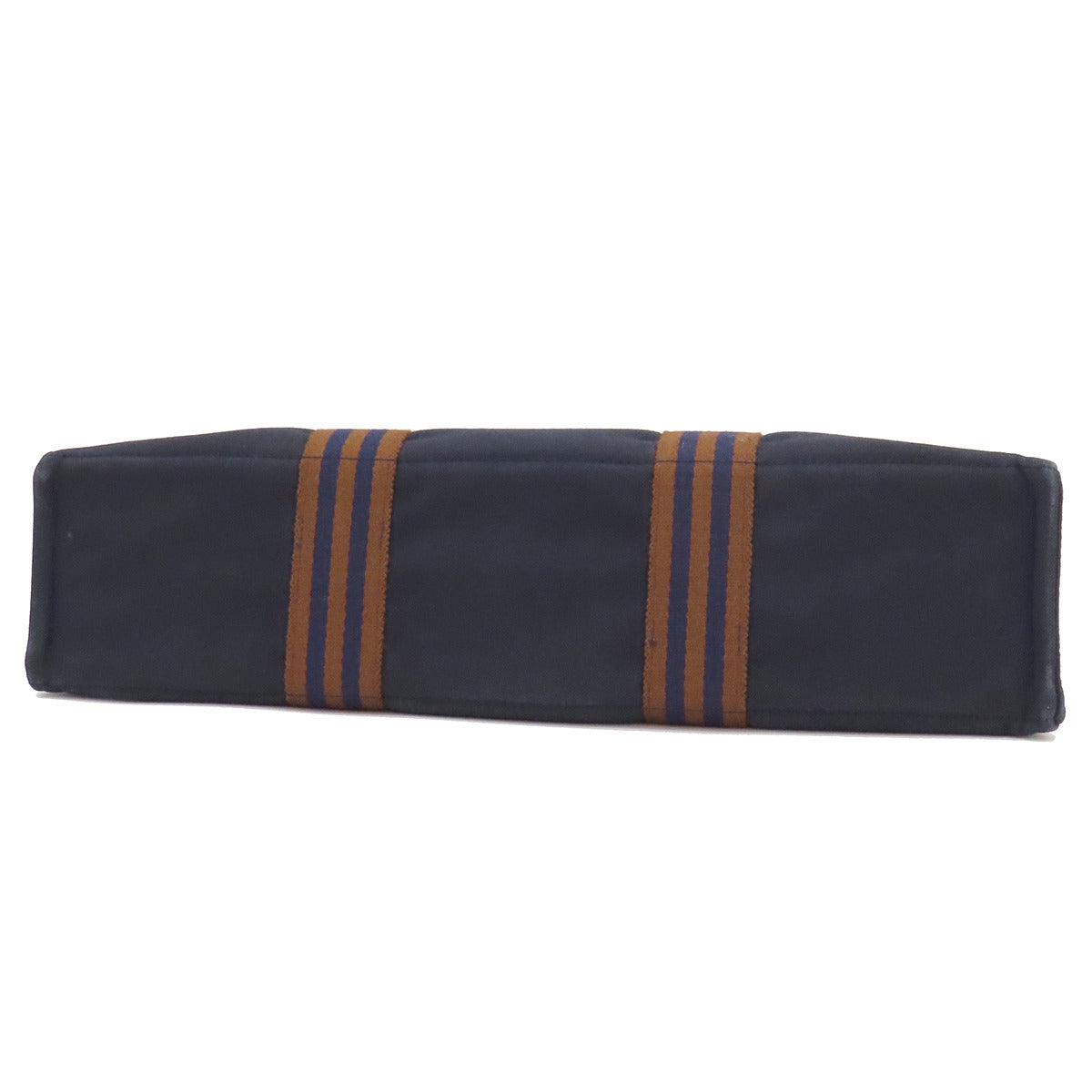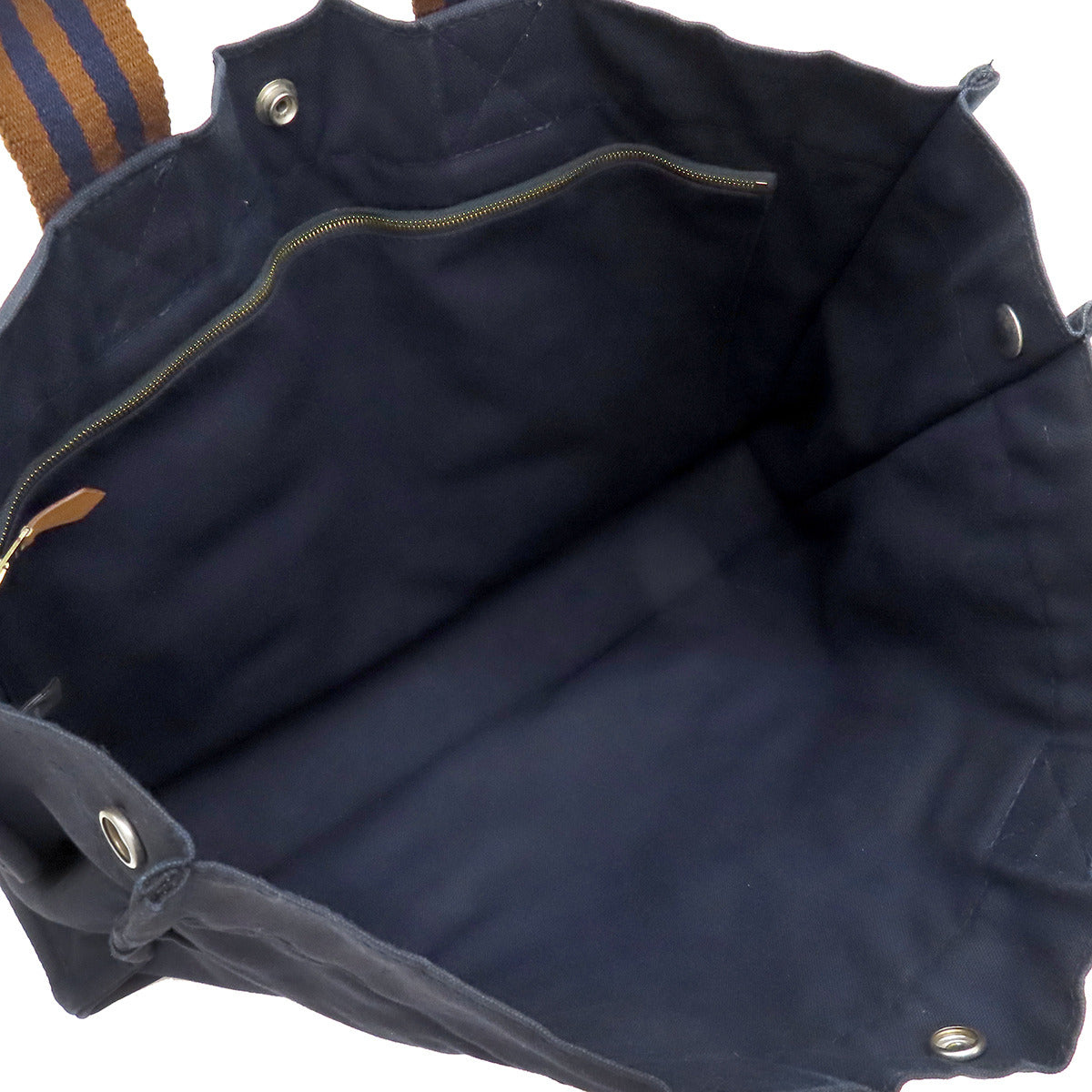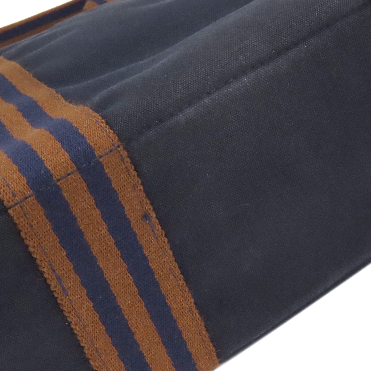 エルメス HERMES フールトゥMM ネイビー×ブラウン キャンバス トートバッグ シルバー金具 紺 茶