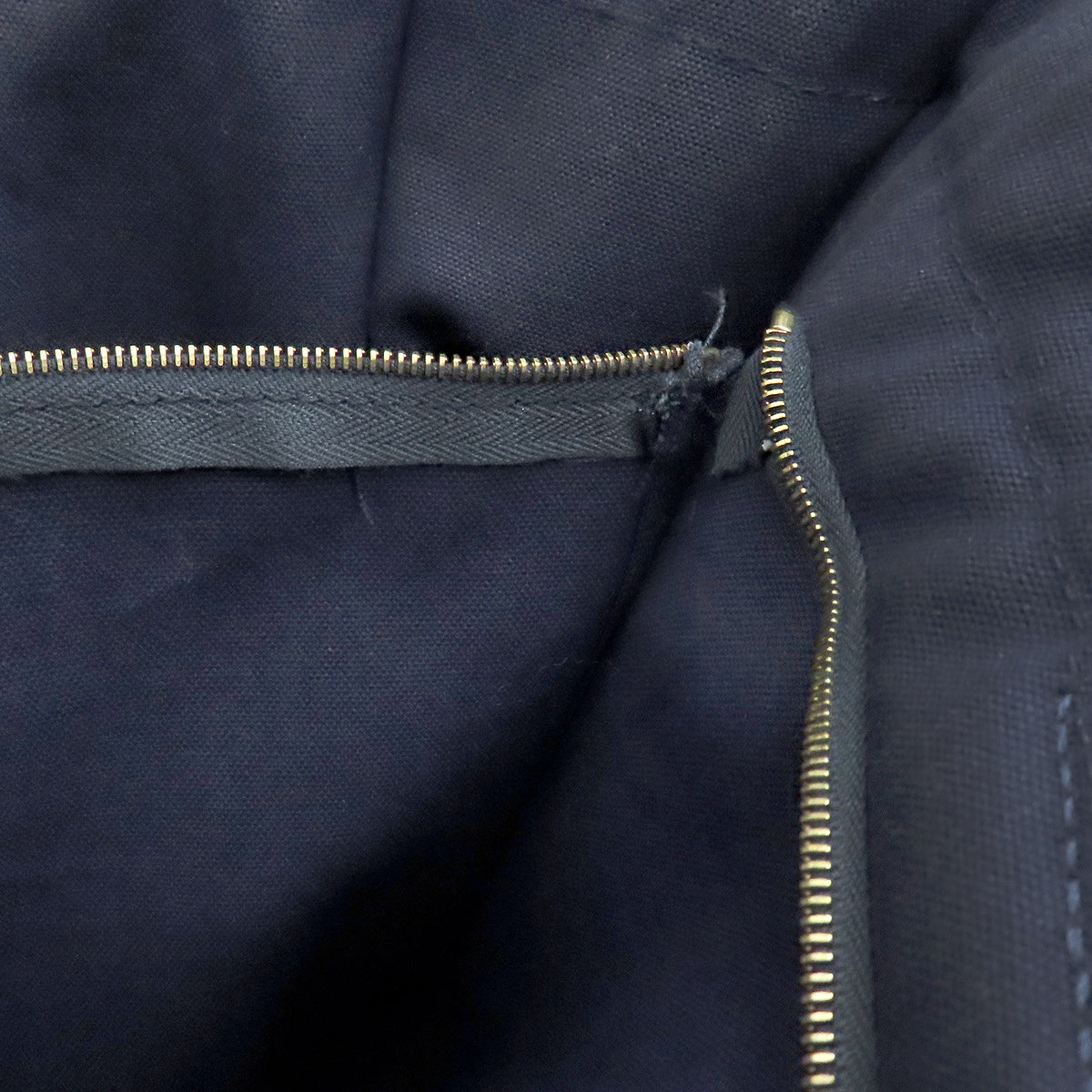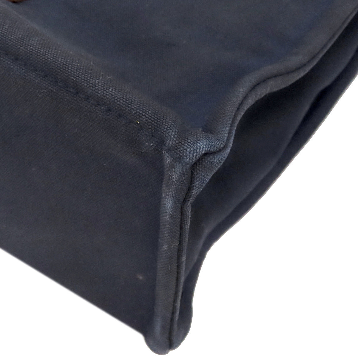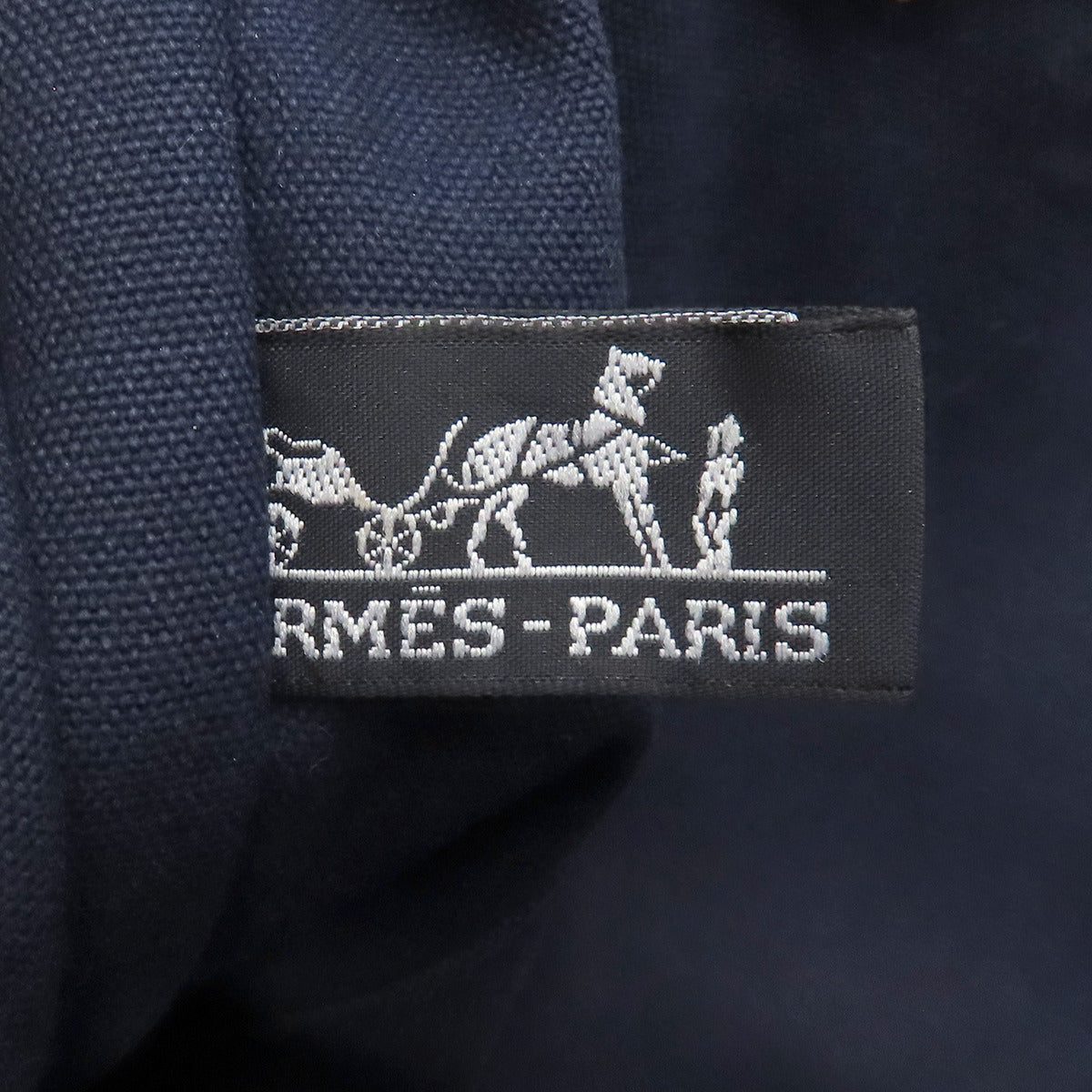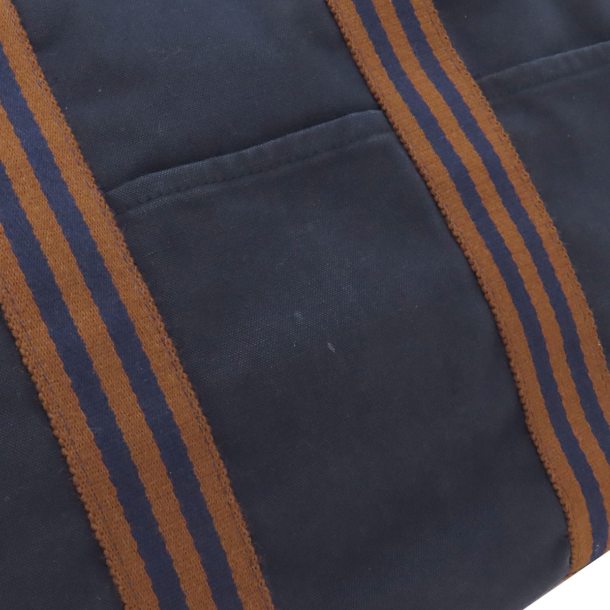 エルメス HERMES フールトゥMM ネイビー×ブラウン キャンバス トートバッグ シルバー金具 紺 茶