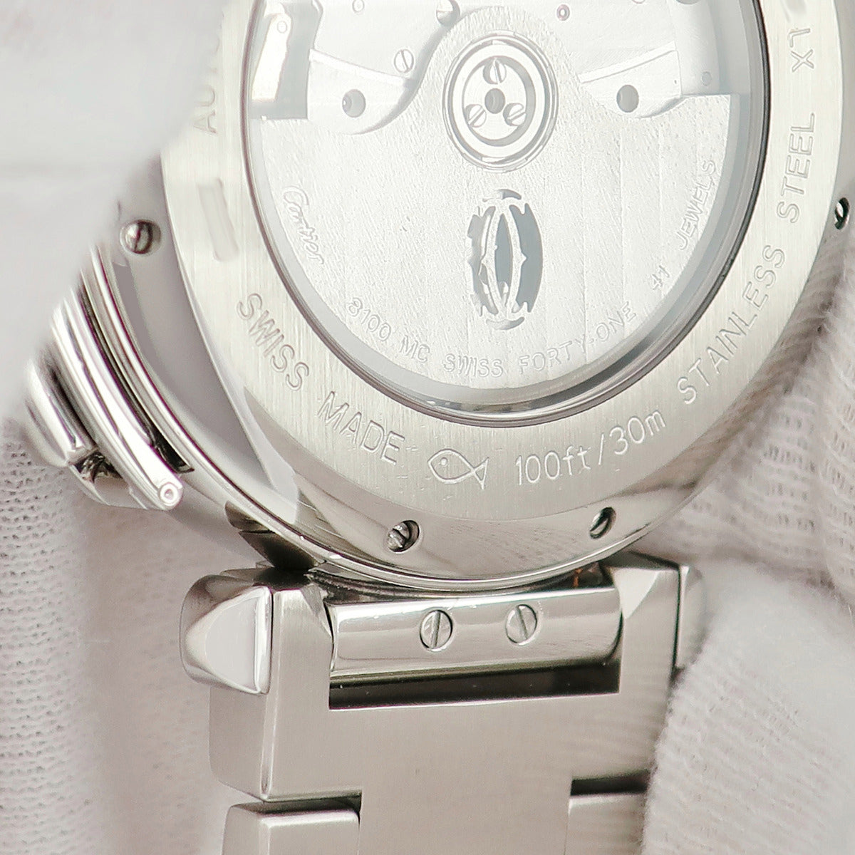 カルティエ Cartier パシャ 42mm クロノグラフ W31085M7 自動巻き メンズ 青針 デイト アラビア バー スモールセコンド