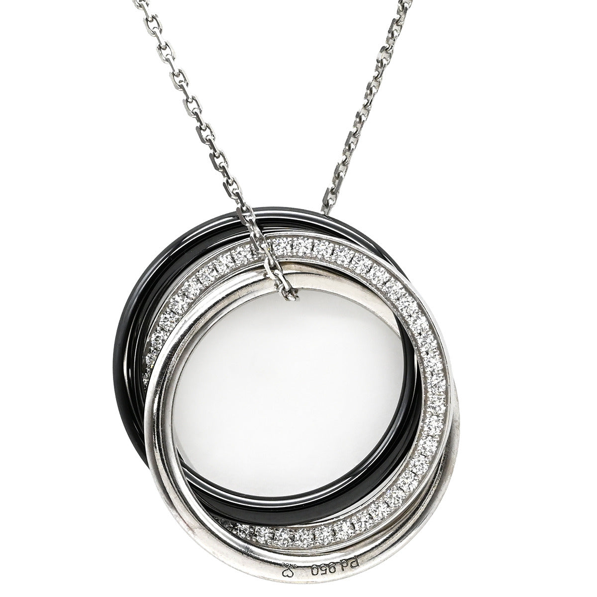 カルティエ Cartier トリニティ ホワイトゴールドXブラック K18WG PD950 ダイヤモンド セラミック ネックレス 18金 750 3連