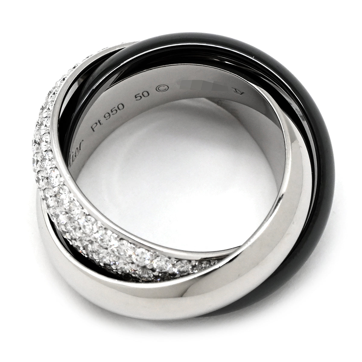 カルティエ Cartier トリニティ XL ダイヤモンド セラミック ホワイトゴールドXブラック #50(JP10) リング 指輪 750 パヴェ 黒セラミック 10号
