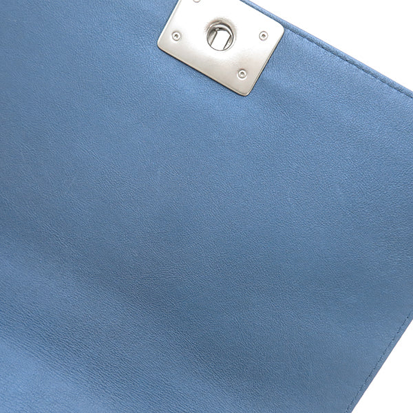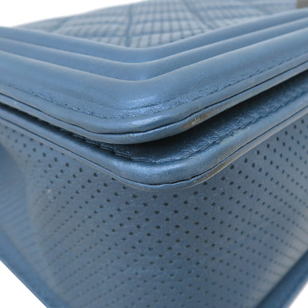 シャネル CHANEL ボーイシャネル メタリックブルー カーフ ショルダーバッグ シルバー金具 青 肩掛け ココマーク パンチングレザー