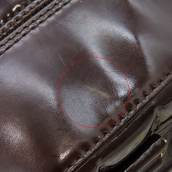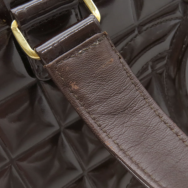 シャネル CHANEL チョコバー ブラウン パテントレザー レザー ボストンバッグ ゴールド金具 茶 ボストンバッグ ココマーク