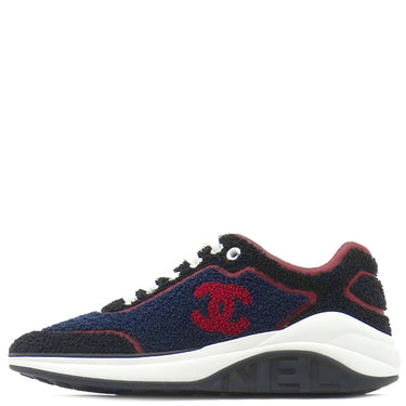 シャネル CHANEL ココマーク パイル G36256 ネイビー×ブラック×レッド パイル レザー #36 スニーカー 黒 紺 赤