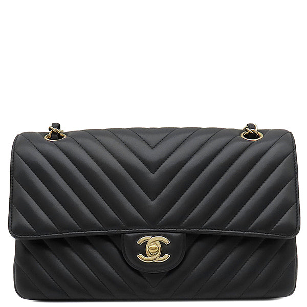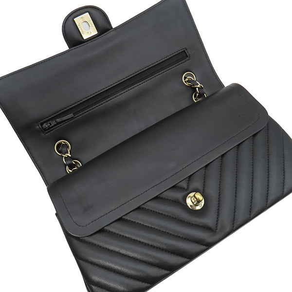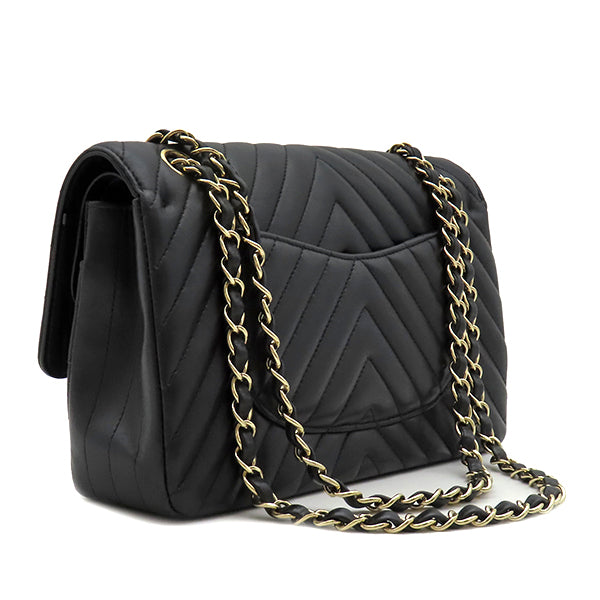 シャネル CHANEL マトラッセ 25 シェブロン ブラック ラムスキン ショルダーバッグ ゴールド金具 黒 ダブルフラップ Vステッチ