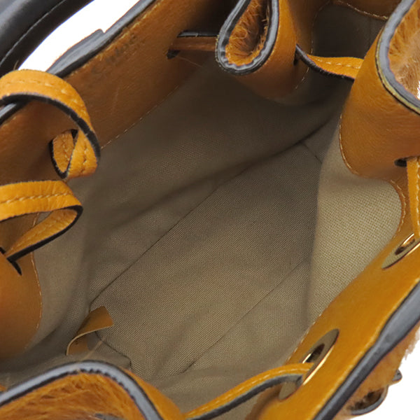 クロエ Chloe ガラ ロングヘアーカーフ アンバーイエロー レザー ハラコ 2WAYバッグ ゴールド金具 巾着 黄色