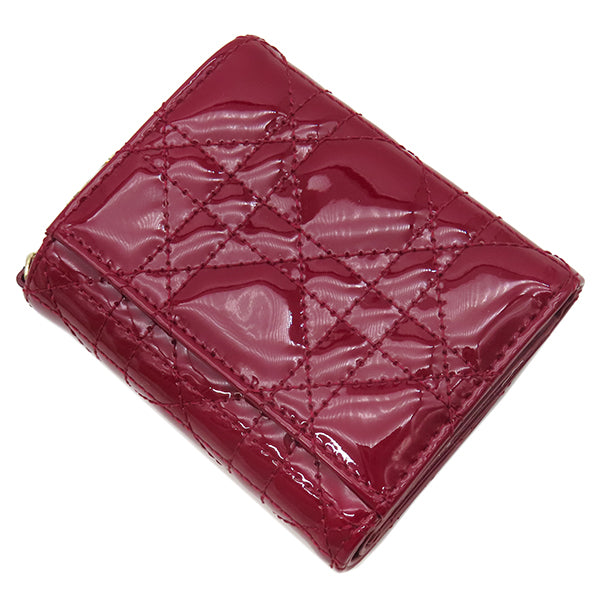 クリスチャン・ディオール Christian Dior レディディオール ロータス ウォレット S0181OVRB_M323 チェリーレッド カーフ 三つ折り財布 ゴールド金具 赤 チャーム付き