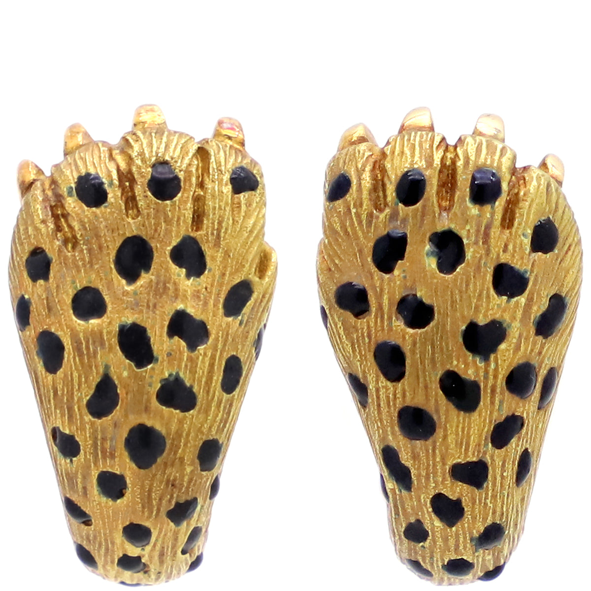 ノンブランド NON BRAND エナメル アンティーク イヤリング イエローゴールド イヤリング 750 ヒョウ 豹 アニマル